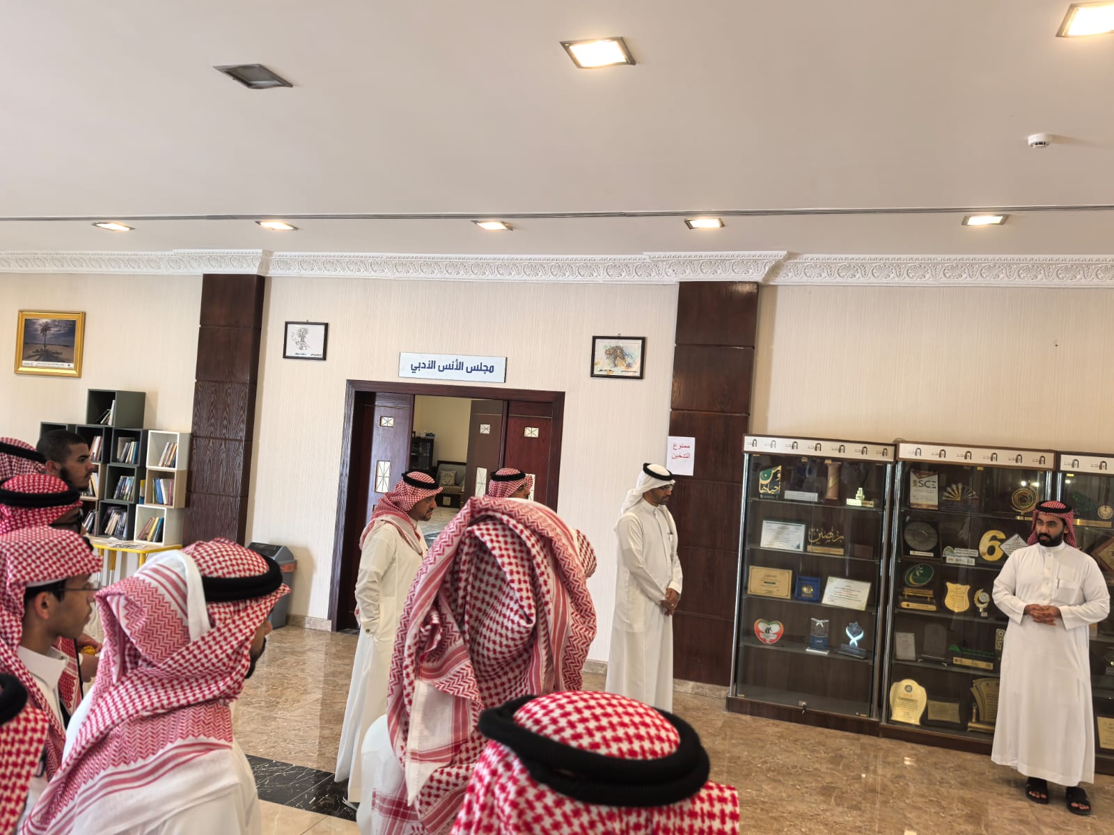 حيث ستقبلت الجمعية صباح يوم الثلاثاء 19 شوال 1447هـ الموافق 7 أبريل 2026م، وفدًا طلابيًا من ثانوية الملك سعود بالمبرز، بإشراف الأستاذ فهد القعود، في زيارة هدفت إلى تعزيز الوعي الأدبي لدى الطلاب، وتعريفهم بدور الأدب في بناء الفرد وصياغة الوعي المجتمعي.