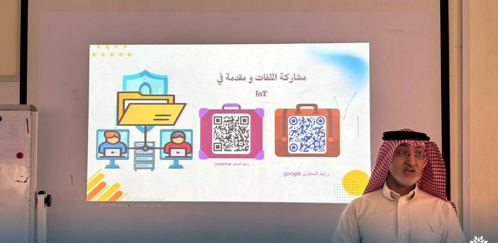 قدّم الورشة المدرب علي العامر، حيث تناولت أساسيات مشاركة الملفات، ومفاهيم إنترنت الأشياء، مع استعراض تطبيقات عملية تسهم في تعزيز الفهم التقني وربط المعرفة النظرية بالتطبيق.