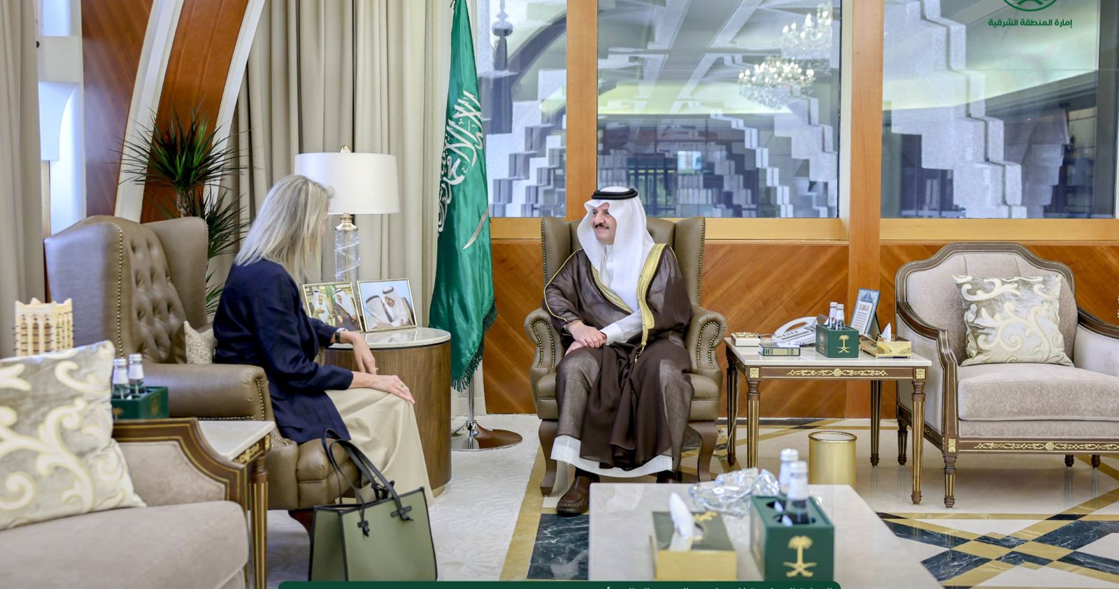 ورحب سموه بالسفيرة في المنطقة الشرقية، متمنيًا لها طيب الإقامة، فيما جرى خلال اللقاء تبادل الأحاديث الودية، وبحث عدد من الموضوعات ذات الاهتمام المشترك، بما يعزز مجالات التعاون والتواصل بين الجانبين.