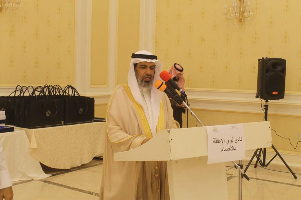 أقام نادي ذوي الإعاقة بالأحساء احتفالاً رائعاً ومميزاً في قاعة السرايا للمناسبات لتكريم رئيس وأعضاء مجلس الإدارة السابقين الذين تعاقبوا على إدارته بعد الاعتراف الرسمي تحت مظلة رعاية الشباب تقديراً لجهودهم المباركة التي بذلوها في عهدهم وتحقيق النادي عدد من الإنجازات المحلية والدولية وقدم الحفل الأستاذ نواف بن علاي الجري رحب بسعادة وكيل المحافظة وجميع الحضور ثم بدأ الحفل بتلاوة آيات من الذكر الحكيم تلاها الأستاذ جاسم بن محمد المال عضو مجلس الإدارة بالنادي.