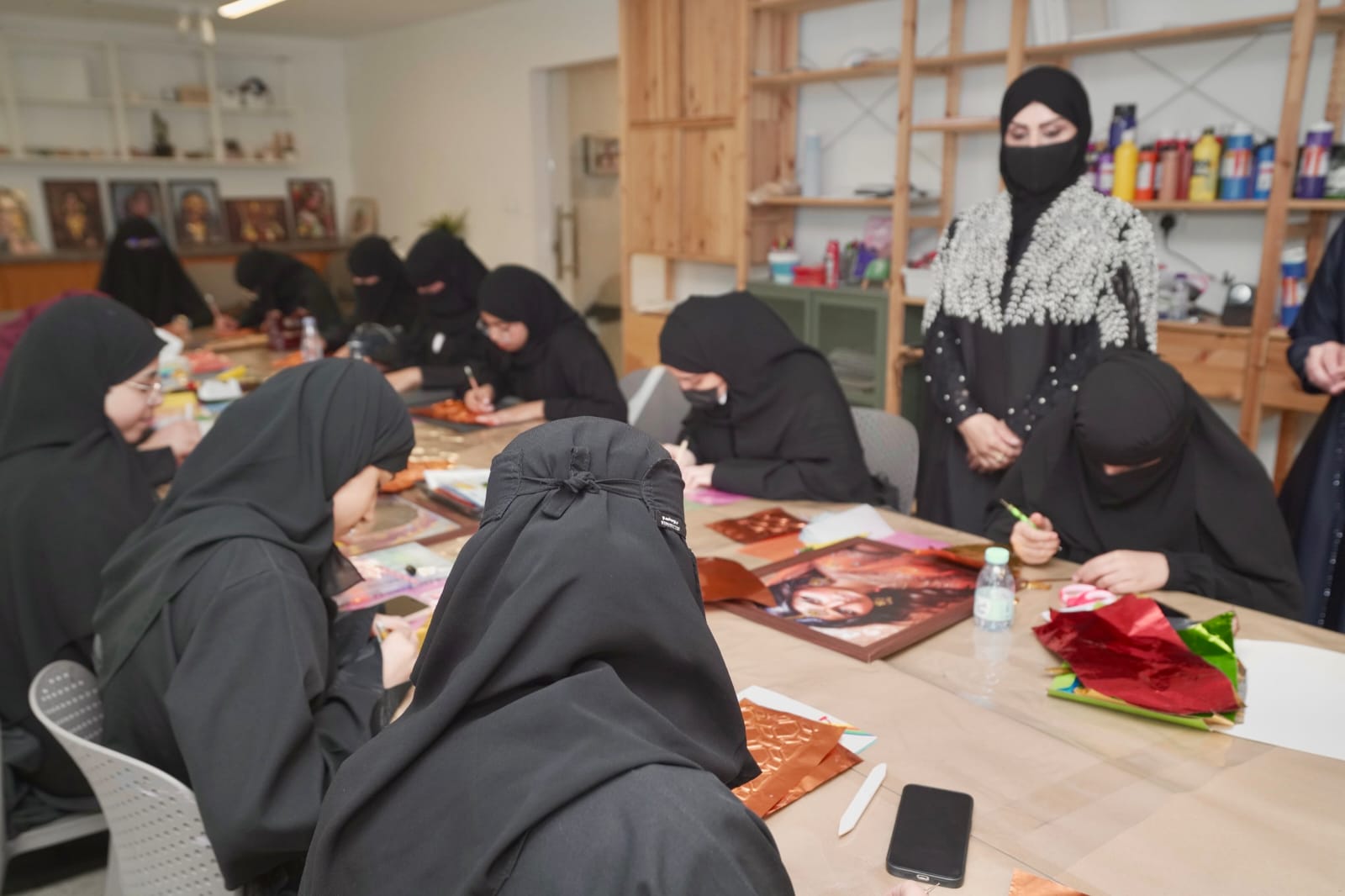 كما تم إشراك مجموعة من الطلاب والطالبات في التلمذة للاستفادة من تجارب اساتذتهم فنياً.
