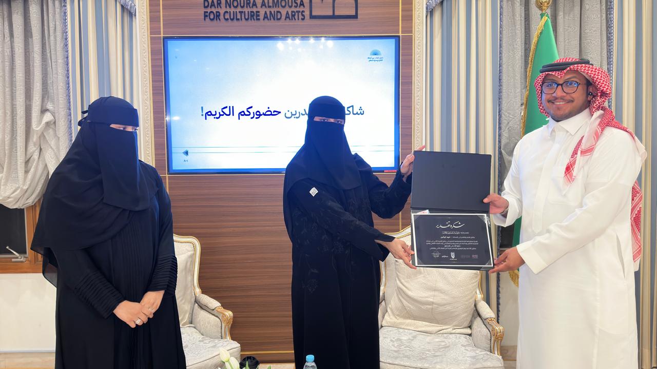 وفي ختام الجلسة، جرى تكريم ضيفة اللقاء المحامية الأستاذة شهد أبوثنين بشهادة تقدير، احتفاءً بإسهامها المعرفي في نشر الوعي بحقوق المؤلف وتعزيز الثقافة القانونية، وسط تقدير الحضور وتفاعلهم.