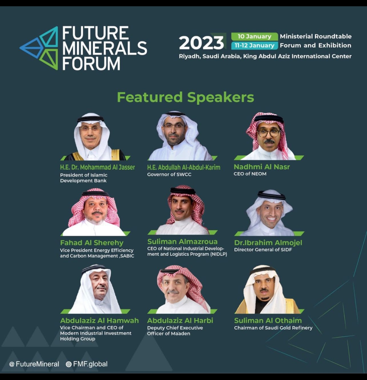 وأضاف سعادته بأنه فخور بأن يشكل هذا المنتدى منصة تجمع الحكومات و المستثمرين و المستكشفين و قطاعات التعدين والشركات المختلفة في العالم و قادة هذا القطاع الحيوي الكبير بالإضافة إلى تواجد الشركة لتشكيل مستقبل واعد لي منطقة شاسعة من العالم تحتضن هذه الثروات .