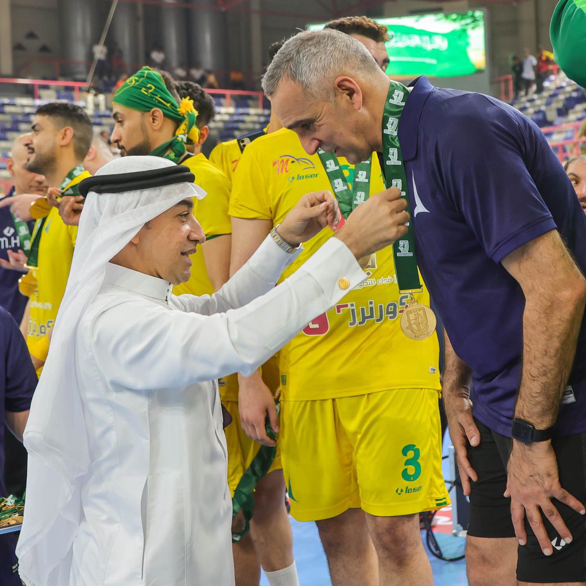 وبعد نهاية المباراة توج رئيس الاتحاد السعودي لكرة اليد الأستاذ فاضل آل نمر فريق مضر بالميداليات البرونزية وفريق النور بالميداليات الفضية والخليج بالميداليات الذهبية وكأس البطولة.