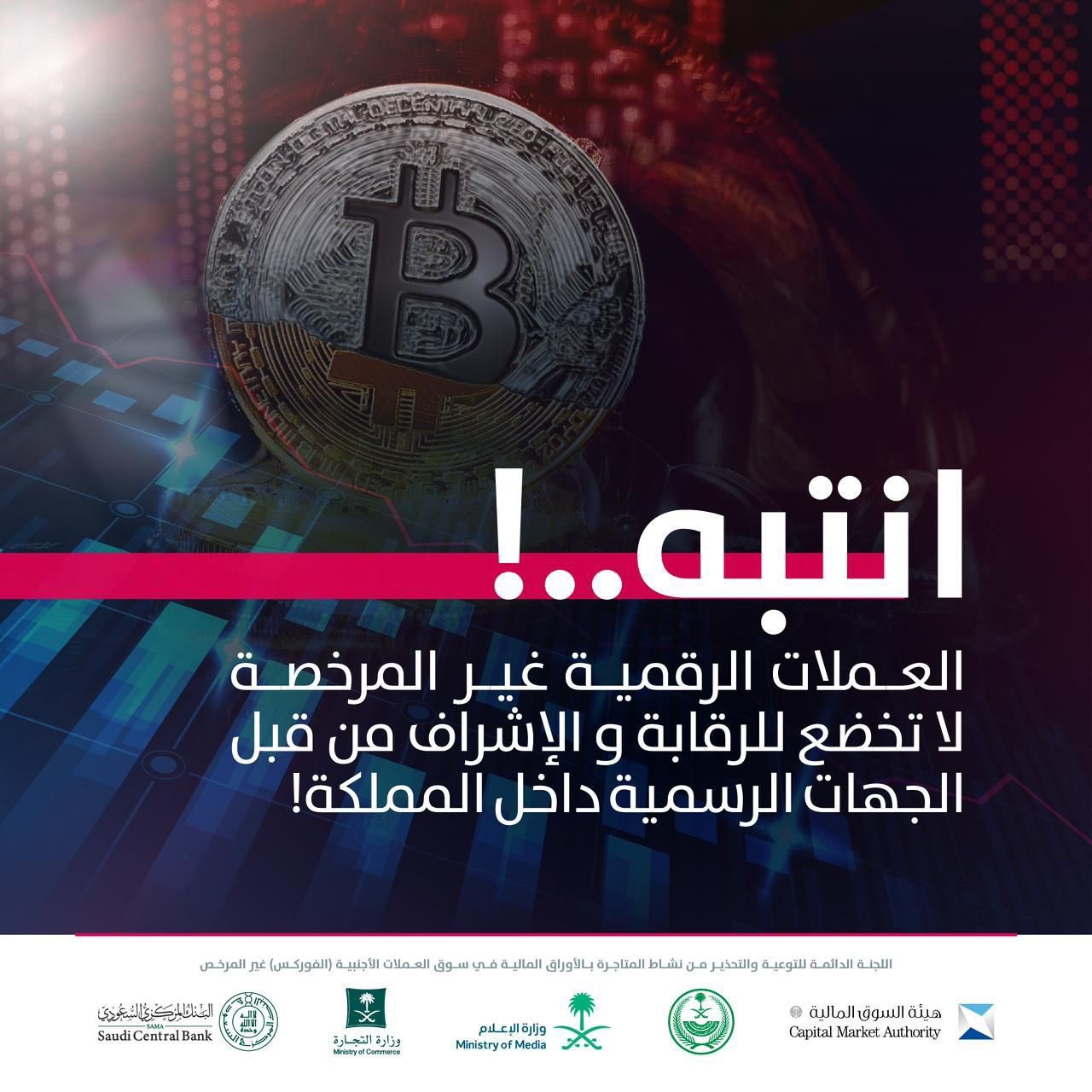 وتقول اللجنة الدائمة للتوعية والتحذير من نشاط المتاجرة بالأوراق المالية في سوق العملات الأجنبية (الفوركس) غير المرخص، إن العملات الافتراضية، ومنها على سبيل المثال “البيتكوين،” لا تُعدُّ عملات معتمدة في المملكة، وبالتالي فإن مزاعم المواقع المروجة للاستثمار في تلك العملات على شبكة الانترنت ووسائل التواصل الاجتماعي بأنها جهات مرخصة من قبل الجهات الرسمية في المملكة غيرُ صحيح.
