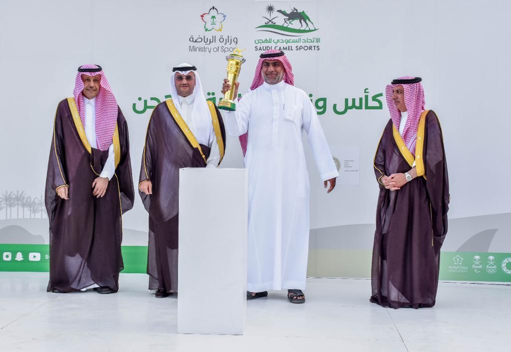تحت رعاية صاحب السمو الملكي الأمير سعود بن نايف بن عبدالعزيز أمير المنطقة الشرقية، كرم صاحب السمو الملكي الأمير سعود بن طلال بن بدر محافظ الأحساء، اليوم ” الاثنين ” الأخير من كأس وزارة الرياضة للهجن 2022 الفائزين بكؤوس فئات الحقايق، واللقايا، والجذاع، والثنايا، والحيل، والزمول، بواقع أربعة فائزين في كل فئة، بالإضافة إلى الفائزين بكأسي الماراثون، بحضور معالي مساعد وزير الرياضة الأستاذ عبدالإله بن سعد الدلاك ونائب رئيس الاتحاد السعودي للهجن الأستاذ محمد بن حماد البلوي، والمدير التنفيذي للاتحاد المهندس محمود بن سليمان البلوي.