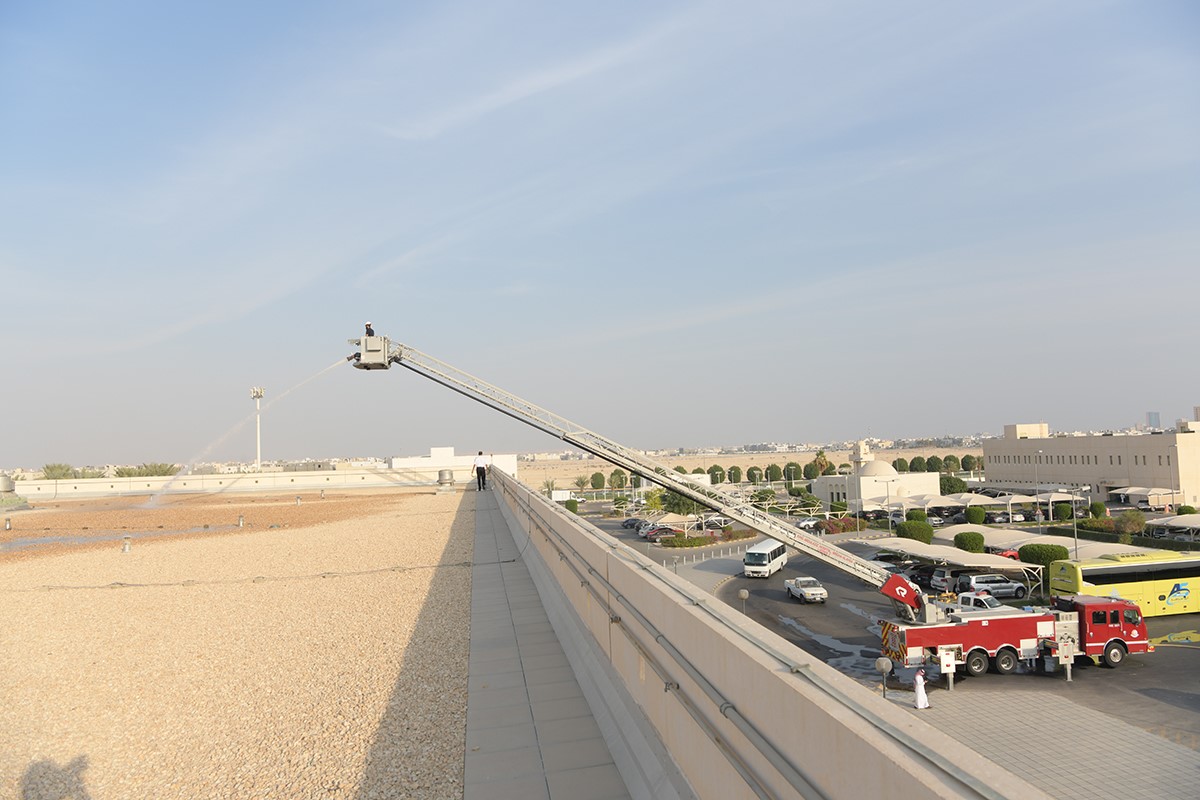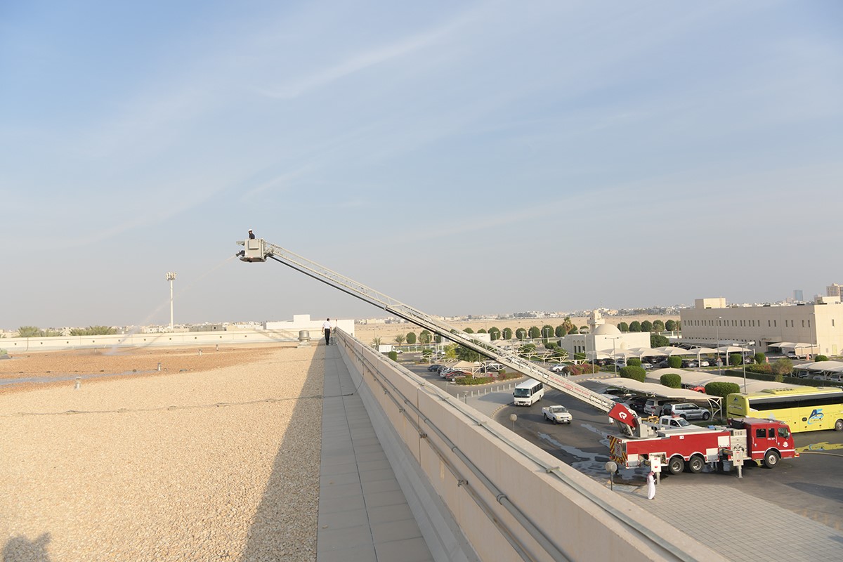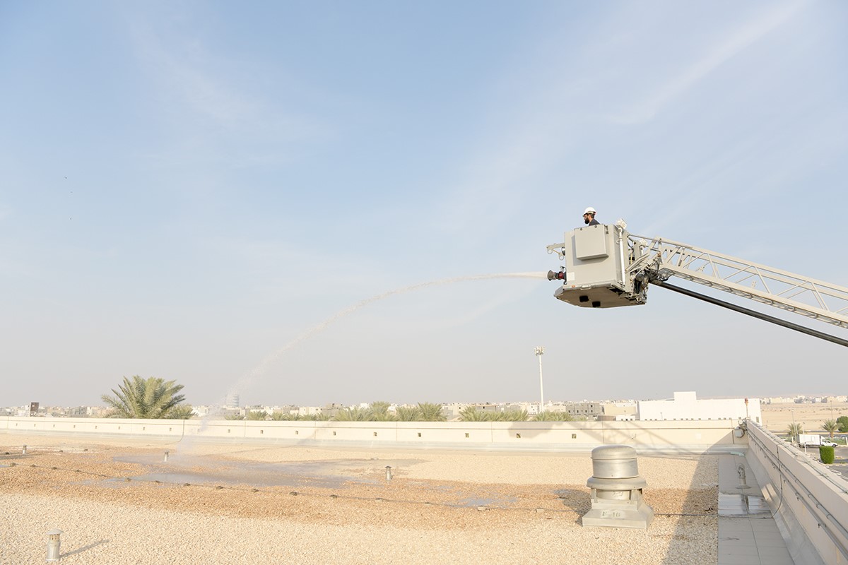 نفذت إدارة مكافحة الحرائق وبالتعاون مع إدارة السلامة، والصيانة في مستشفى الملك عبدالعزيز التابع للشؤون الصحية بوزارة الحرس الوطني بالأحساء، فرضية جريان سيول بعد عاصفة مطرية، هدفها الرئيسي الوقوف على استعدادات المستشفى في تصريف كميات المياه الناتجة عن تلك العاصفة، ونفذت الفرضية على مرحلتين الأولى لاختبار محطات التصريف المحيطة بالمستشفى، والثانية لاختبار تحمل سطح المستشفى لكميات المياه المنهمرة.