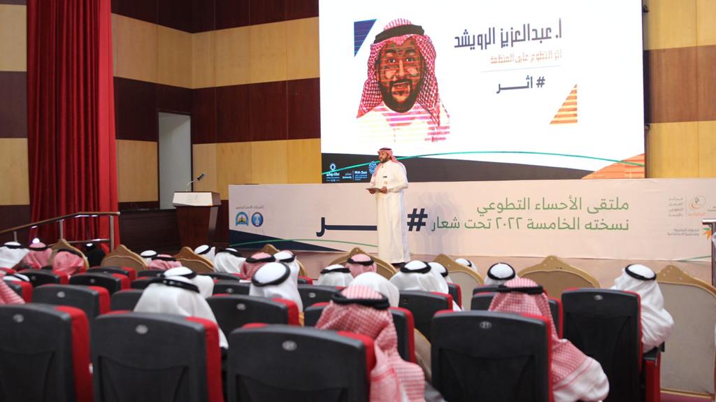 حيث أنطلق الملتقى الذي يهدف لاستعراض المشاركات النوعية التي قام بها متطوعي الاحساء وعرض تجاربهم التطوعية، بآيات عطره من القران تلاها إبراهيم التيسان، ثم تلتها فقرة أثر التطوع على الفرد قدمها الطالبين رضا العلي وعبدالرحمن النعيم من مدارس الانجال الأهلية تحدثوا فيها عن التطوع من خلال تقديم المُساعدة في العديد من الأمور في حياة وتعزيز المهارات في الحياة، تلاها عرض مرئي يحكي عن جهود المتطوعين في الأحساء وجهود الجمعية في تفعيل أسبوع التطوع والذي تضمن أكثر من 4 مبادرات تطوعية (مبادرة الأحساء الخضراء مع المؤسسة العامة للري – اللقاء الحواري الطلابي مع مدارس الانجال الاهلية – رصد التشوهات البصرية مع محافظة الأحساء – وإنقاذ المواطنين والمقيمين في المحافظة مع جمعية إنجاد للإنقاذ).