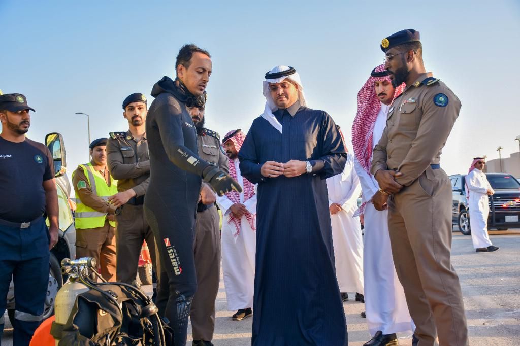وتجول سموّه على اركان الدفاع المدني والفرق التطوعية والتي تتضمن معدات الغوص وحالات البحث والانقاذ ، مستمعاً سموّه لشرح عن جهود الدفاع المدني وجاهزية الاستعدادات لمواجهة اي حالة طارئ وخطوات مباشرتها بالشكل المطلوب ، مشيداً سموّه بالجهود المقدمة من الدفاع المدني والتعاون مع الفرق التطوعية في اعمال البحث والأنقاذ و القيام بجهودهم عند وقوع الحوادث وأعمال التوعية التي تتم عبر الوسائل المختلفة والجولات الميدانية للتأكد من تطبيق إجراءات الأمن والسلامة