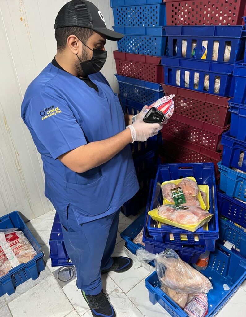 ضبطت امانة الاحساء مخالفة ” مستودع دواجن ” ،حيث رصد مراقبي “إدارة الرقابة والامتثال” عدداً من المُخالفات للاشتراطات الصحية والمهنية في الموقع ، فيماتم مصادرة واتلاف نحو 5 أطنان من الدواجن غير الصالحة للاستهلاك الآدمي ” فاسدة” ، وسحب 72 كيلوغراماً ” عينات ” لإجراءات الفحص المخبري ، مع تطبيق الجزاءات بحق المخالفين وفق اللوائح والأنظمة البلدية واغلاق الموقع .