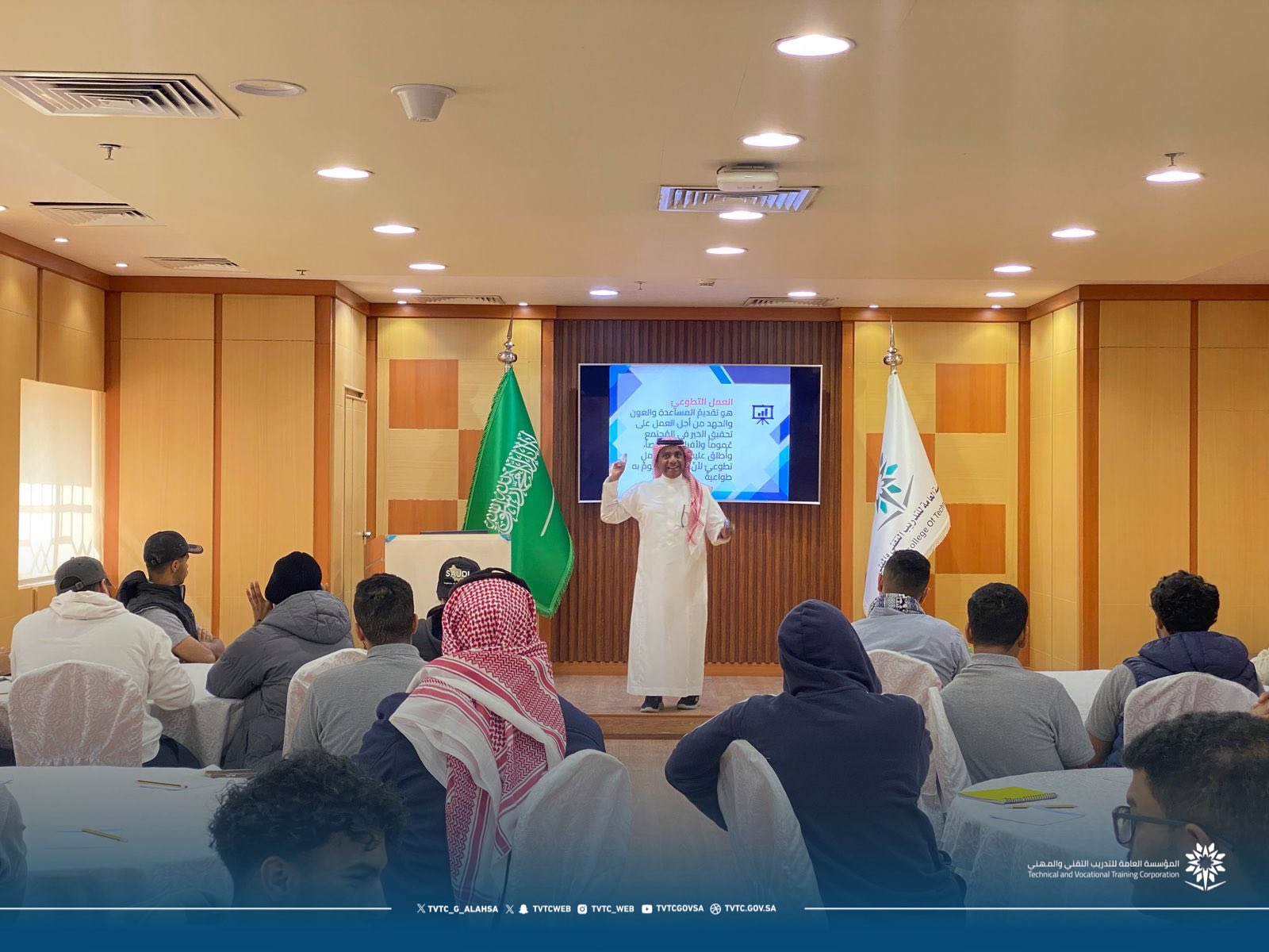 نفذت الكلية التقنية بالأحساء بالتعاون مع معهد التنمية العالي للتدريب، ضمن فعاليات يوم التأسيس، دورة “مبادئ القيادة التطوعية”.