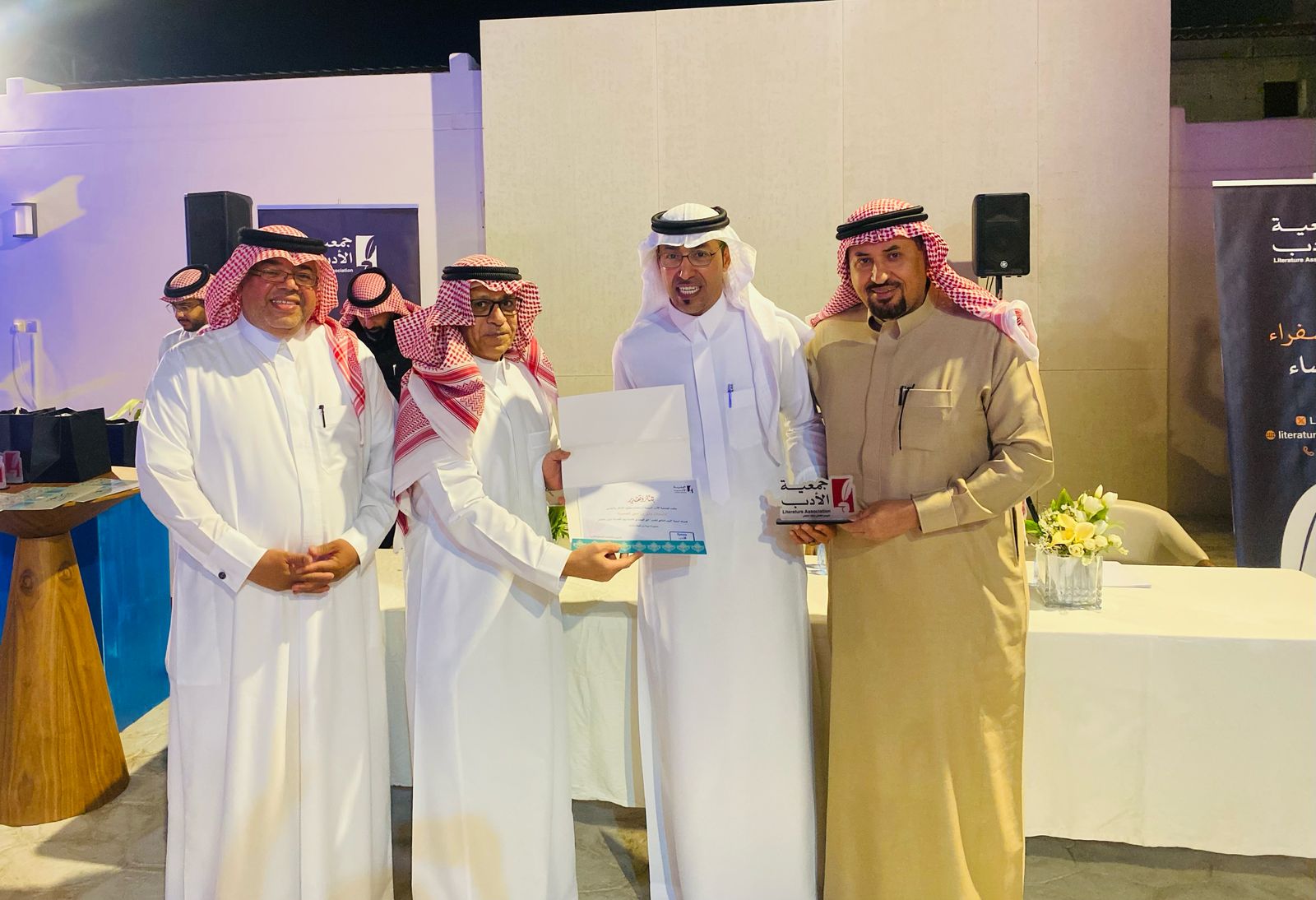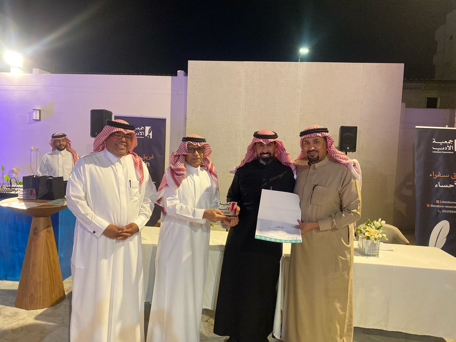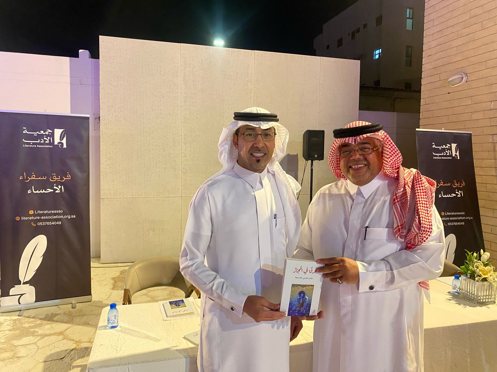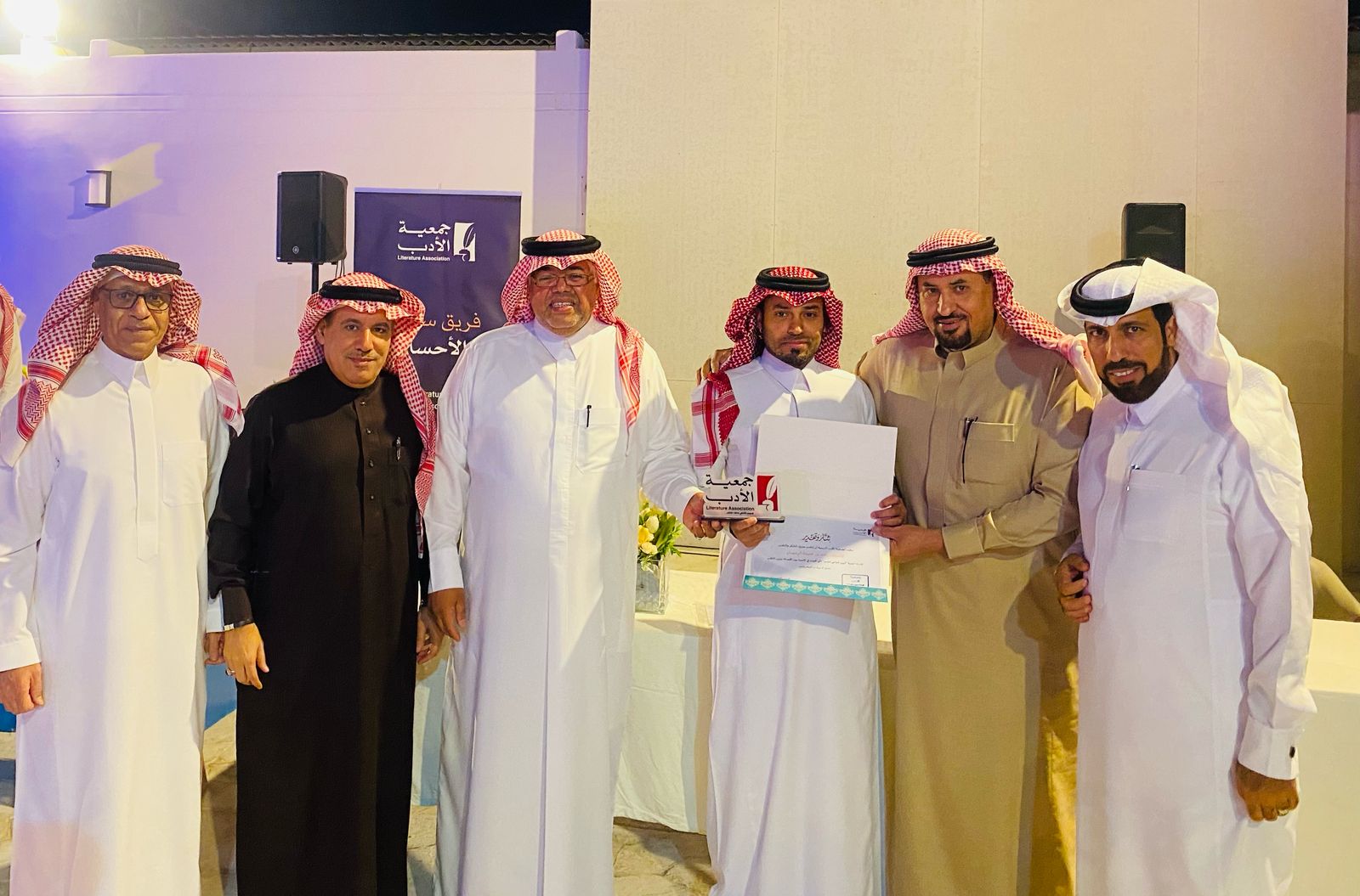 وقدّم رئيس سفراء جمعية الأدب في الأحساء الدكتور عبدالله الخضير شكره لجميع الشعراء المشاركين ودار نورة الموسى والداعم مهندس صادق الرمضان، والجمهور الكريم، ثمّ شارك عضو مجلس إدارة جمعية الأدب الشاعر الكبير جاسم الصحيح كلمة بهذه المناسبة.