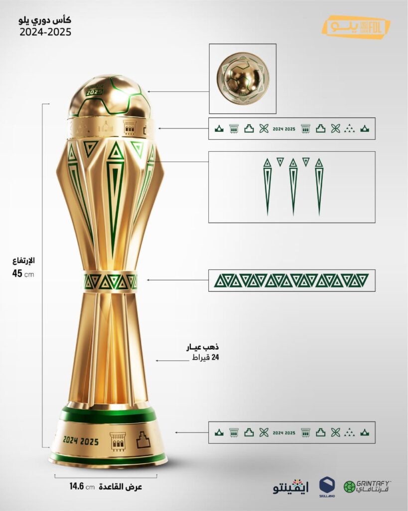 دشنت رابطة أندية الدرجة الأولى للمحترفين كأسًا جديدة لدوري يلو لأندية الدرجة الأولى للمحترفين لموسم 2024-2025، وهي الكأس الأولى من نوعها في المسابقة التي كانت تشهد في المواسم السابقة تتويج البطل بـ “الدرع”.