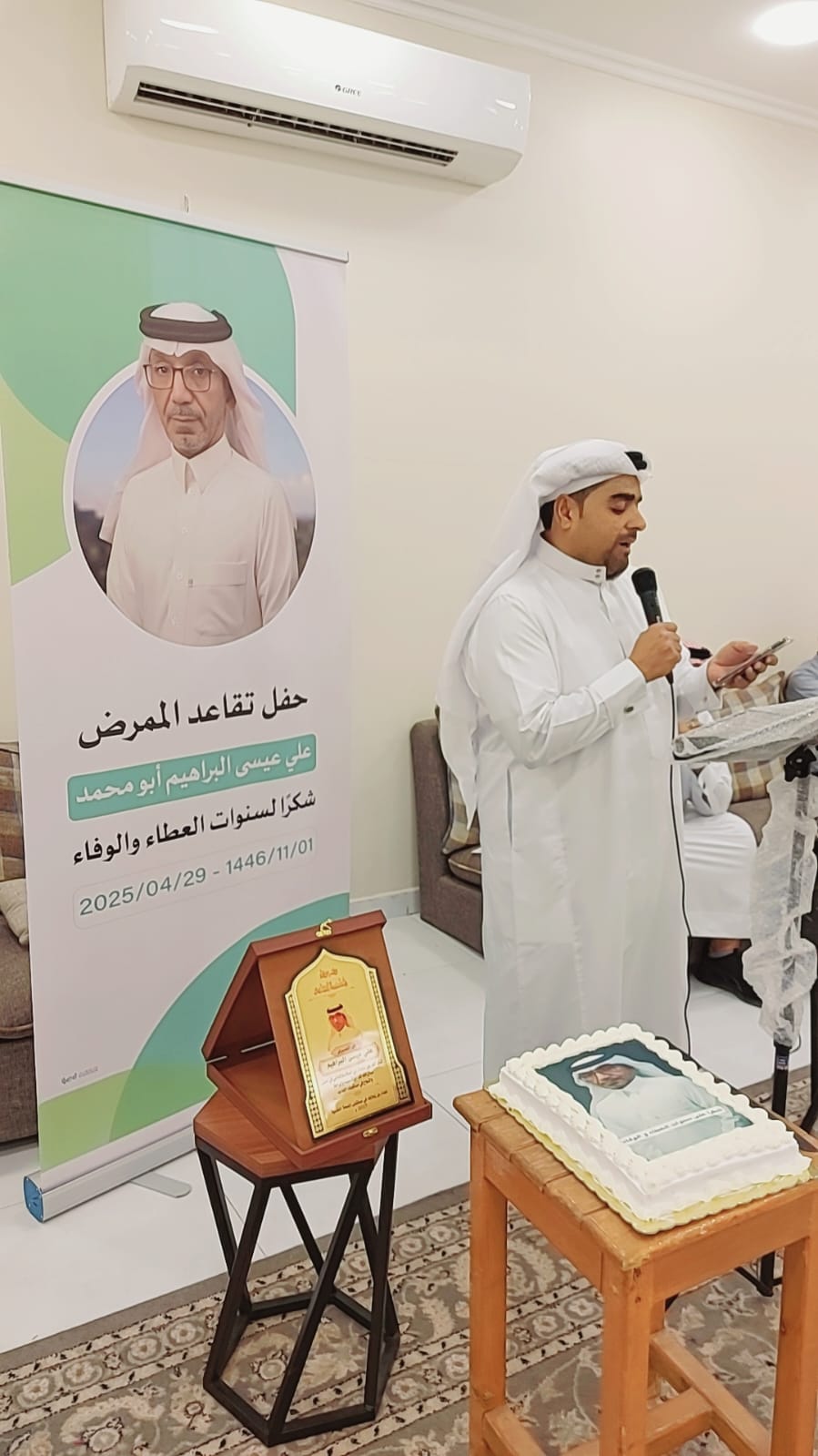في بادرة عرفان ووفاء ومن خلال حفل بهيج أقام زملاء الممرض علي عيسى البراهيم أحد منسوبي مستشفى الصحة النفسية بالأحساء حفل تكريم ووداع لزميلهم بمناسبة تقاعده بعد رحلة عمل إمتدت ل 38 سنة ًكان نموذجاً للمرض المثالي .