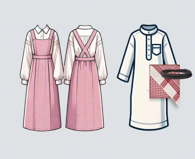 وبحسب الدليل الإرشادي الصادر عن الوزارة، فإن الزي المدرسي للطالبات يتكون من “تنورة خضراء زيتية” و”بلوزة بيضاء”، في حين يشمل زي الطلاب “الثوب” مع “الشماغ أو الغترة والعقال” كخيارات اختيارية.
