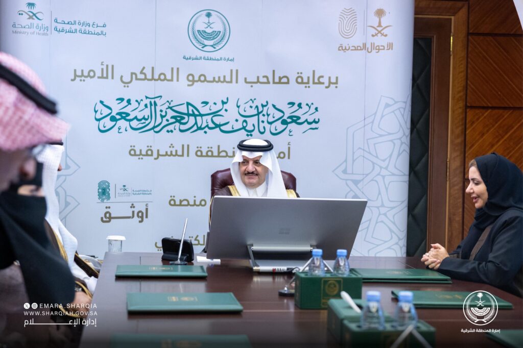 دشّن صاحب السمو الملكي الأمير سعود بن نايف بن عبدالعزيز أمير المنطقة الشرقية، في مكتب سموه بديوان الإمارة اليوم الاثنين، مبادرة منصة “أوثق” التي أطلقها فرع وزارة الصحة بالمنطقة الشرقية من خلال بناء منصة رقمية للتكامل والتعاون الحكومي المشترك بين الفرع والإدارة العامة للأحوال المدنية بالمنطقة الشرقية.