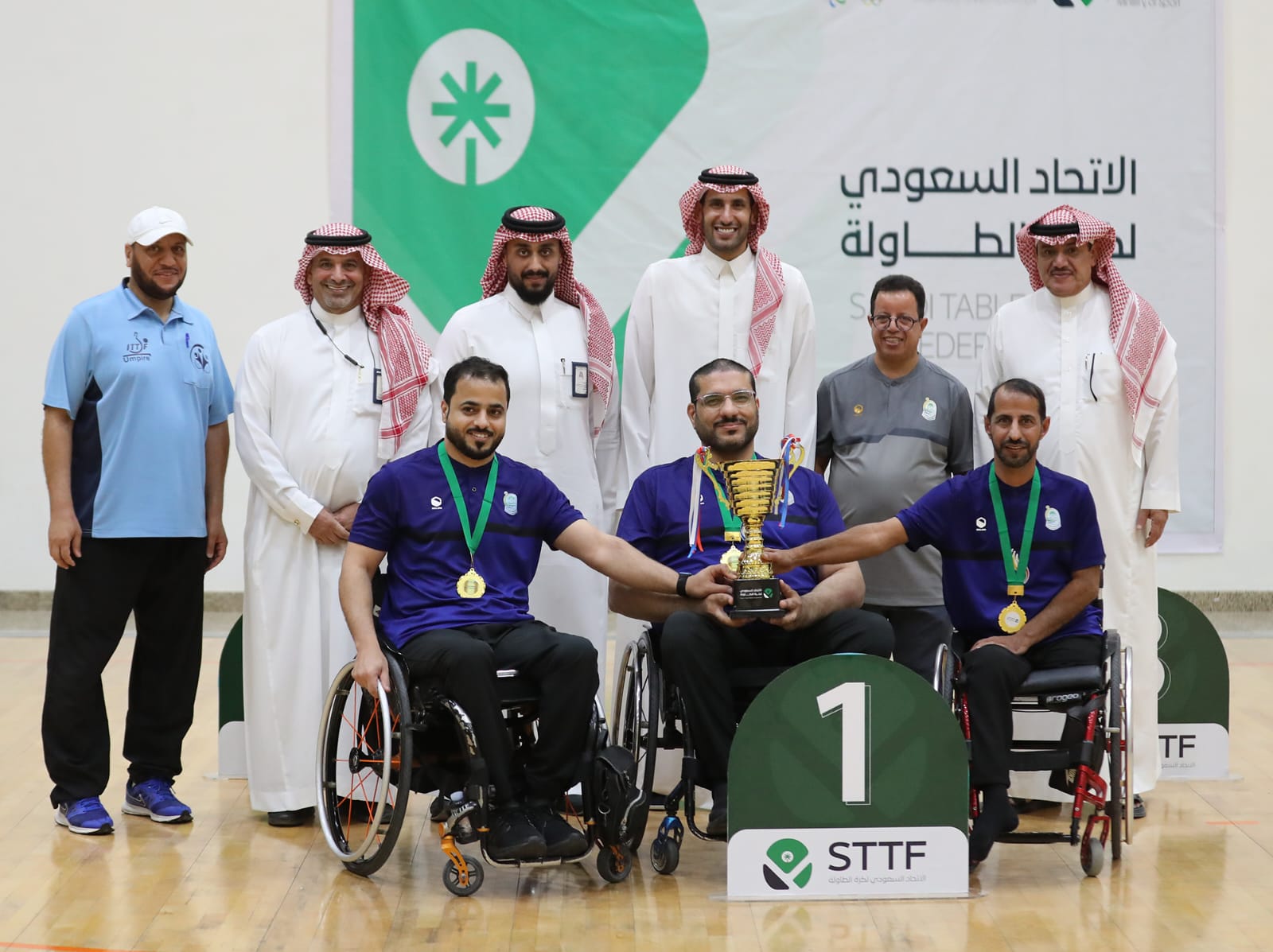 توج صاحب السمو الملكي الأمير محمد بن عبدالرحمن بن ناصر آل سعود رئيس الاتحاد السعودي لكرة الطاولة، فريق تنس الطاولة للدرجة الأولى جلوس بعد تحقيقه المركز الأول في بطولة النخبة لذوي الإعاقة الحركية التي أقيمت في مدينة الرياض في الفترة 10 – 11 مايو في صالة مركز التدريب السعودي.