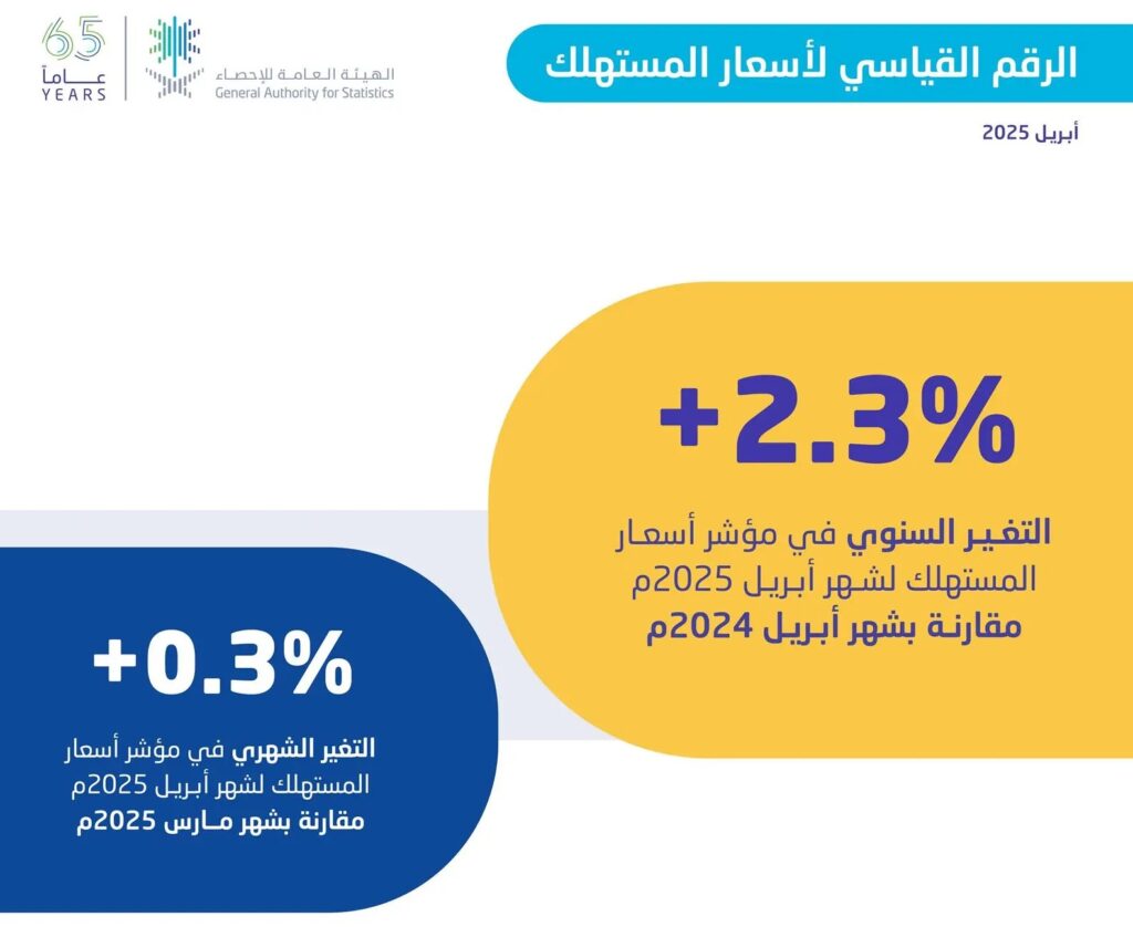 كشفت الهيئة العامة للإحصاء، أنّ معدل التضخم السنوي في المملكة العربية السعودية بلغ 2.3% خلال شهر أبريل 2025 مقارنةً بنظيره من العام الماضي.