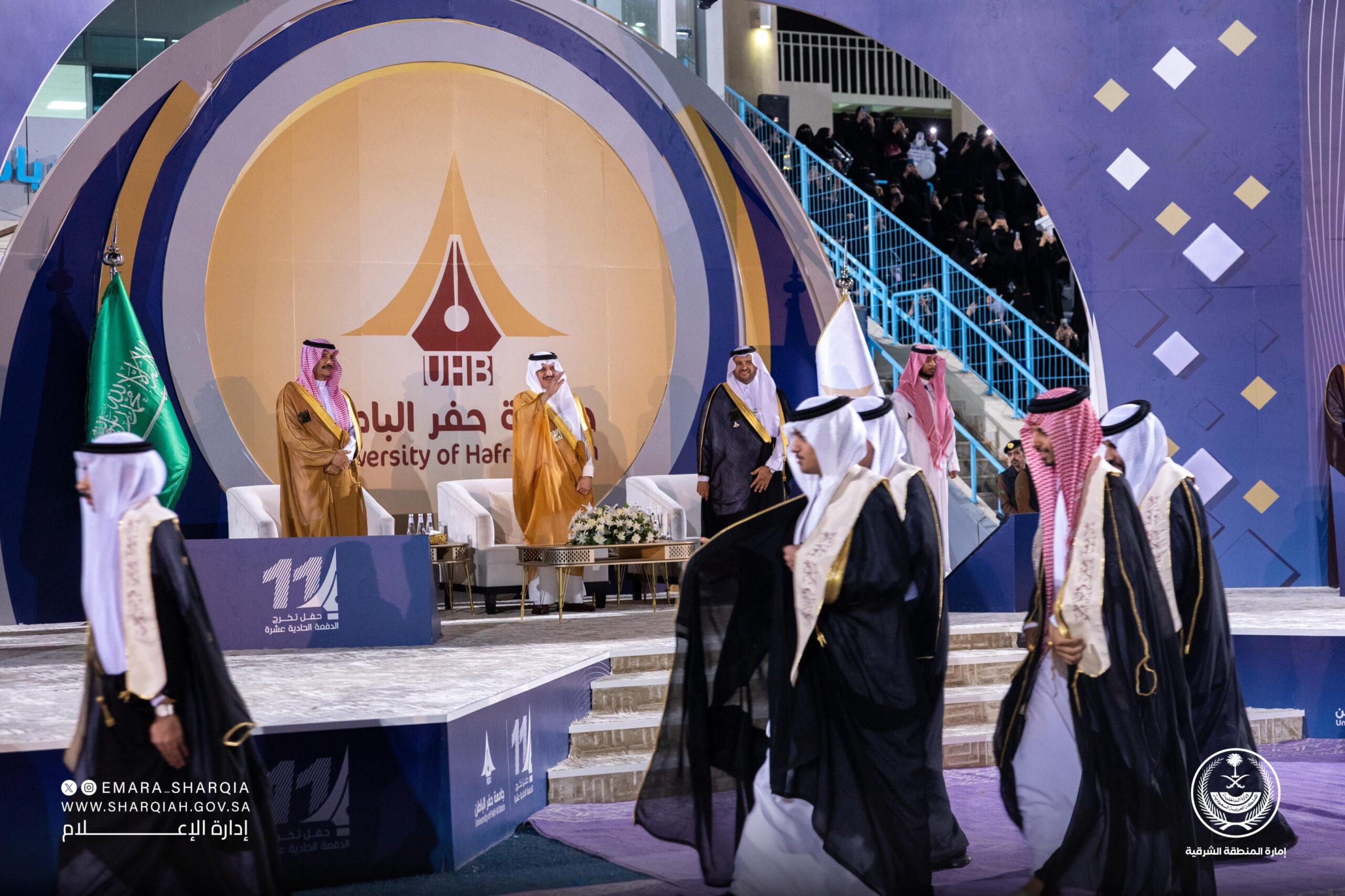 رعى صاحب السمو الملكي الأمير سعود بن نايف بن عبدالعزيز أمير المنطقة الشرقية، بحضور صاحب السمو الأمير عبدالرحمن بن عبدالله بن فيصل محافظ حفر الباطن مساء اليوم الأربعاء، حفل تخريج الدفعة الحادية عشرة من طلاب وطالبات الجامعة، وعددهم ( 4966 ) طالباً وطالبة، وذلك على ملعب نادي الباطن.