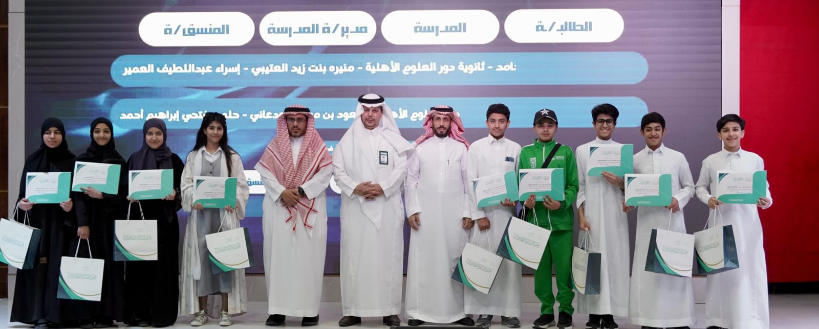 وشمل تكريم مدير التعليم،: 10 طلاب وطالبات حصلوا جوائز في مسابقة الربوت العالمية VEX في الولايات المتحدة الأمريكية، وطالبة وطالب فازوا بجائزة المستثمر الذكي الخليجي على مستوى دول الخليج لعام 1446 هـ، ومدرستين متميزتين والأكثر تسجيلاً في الجائزة المستثمر الذكي الخليجي لعام 1446 هـ.
