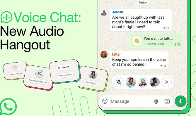 وتُتيح الدردشة الصوتية للمستخدمين التواصل مع أصدقائهم أو أفراد عائلاتهم مباشرةً عبر الصوت دون مغادرة مجموعات واتساب أو الانتقال إلى مكالمة صوتية، فيُمكن لأعضاء المجموعة الآخرين الانضمام إلى المحادثة بسهولة وقتما يشاؤون.