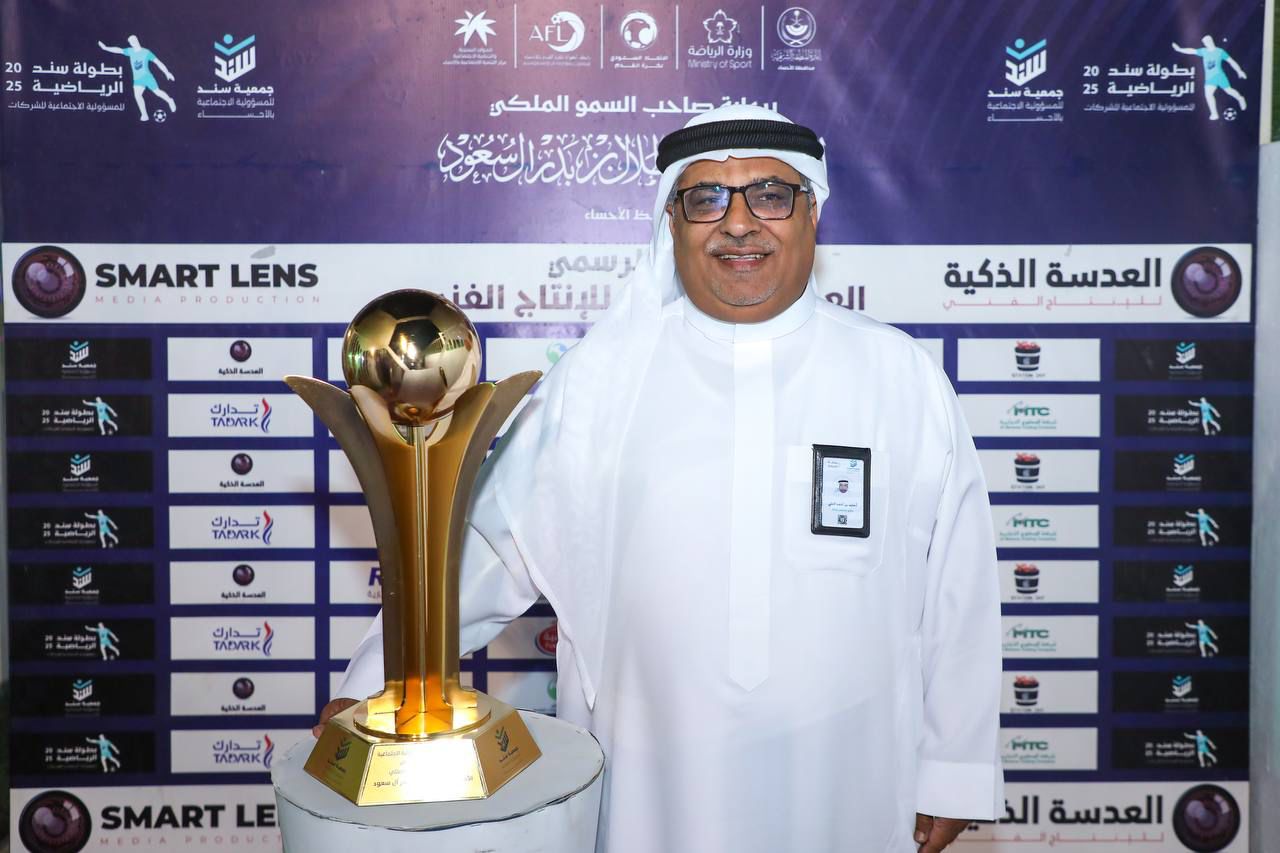 من جانبه، أكد الأستاذ وليد الذياب، الراعي الرسمي للبطولة، على أهمية دور القطاع الخاص، وصرح قائلاً: “إن رعايتنا لهذه البطولة تأتي إيمانًا منا بأهمية المسؤولية الاجتماعية، وبضرورة دعم شبابنا الرياضي ومجتمع الهواة. نرى في هذه البطولة نموذجًا رائعًا للتكامل بين القطاع الخاص والرياضة والمجتمع، ونفخر بأن نكون جزءًا من هذا النجاح. نهنئ فريقنا (أنوار الفضول) ومؤسسة العدسة الذكية بهذا الإنجاز، ونشكر جمعية سند على هذا التنظيم المتميز الذي أتاح لنا الفرصة لتقديم هذا الدعم.”
