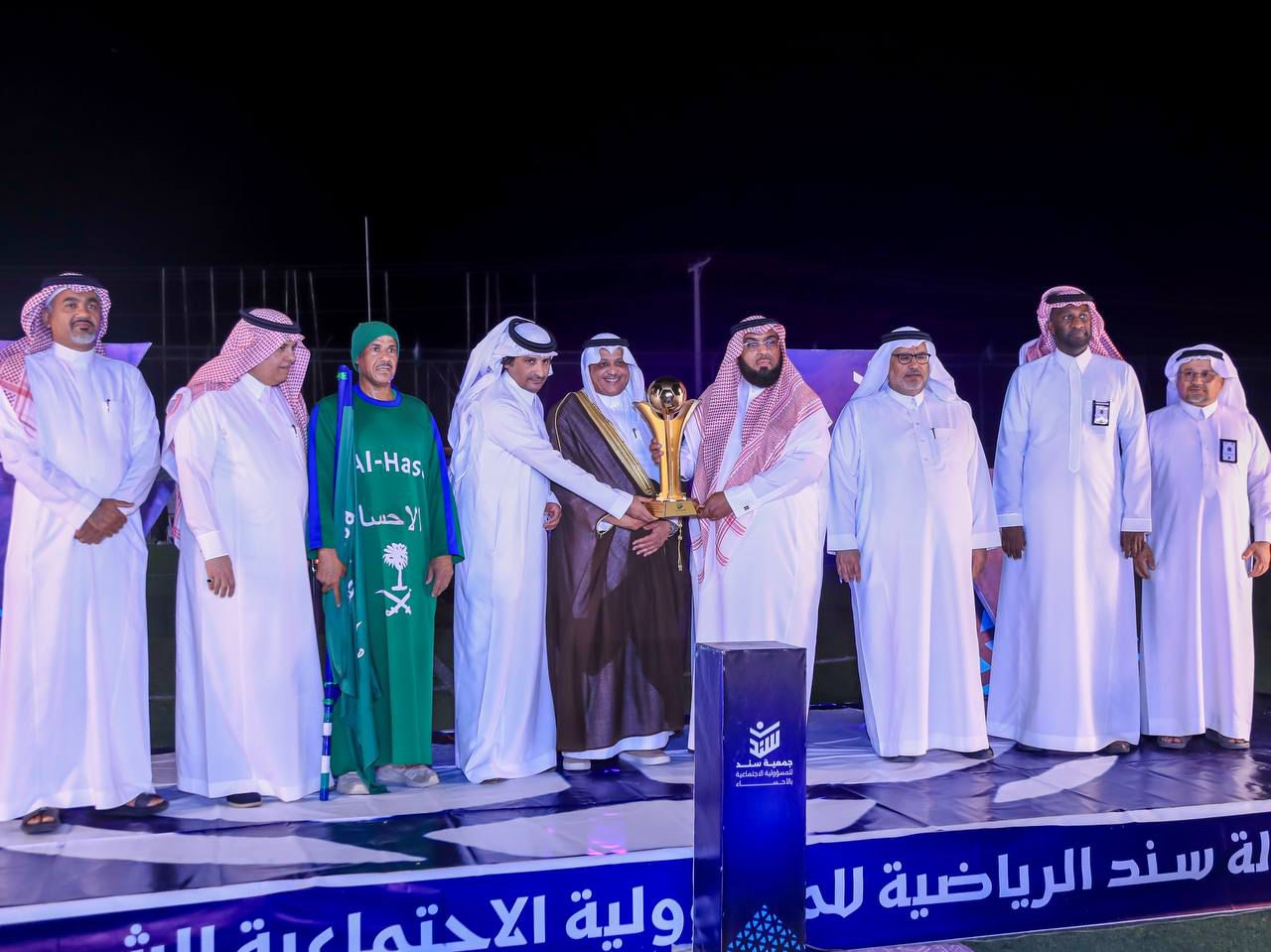 أسدل الستار على منافسات “بطولة سند الرياضية للشركات لكرة القدم” في نسختها الأولى، والتي تعد الأولى من نوعها على مستوى المملكة في الجمع بين منشآت القطاع الخاص ومجتمع فرق الهواة بالأحساء، وذلك بعد 14 يوماً من المنافسات الحماسية التي أقيمت على ملعب درة الأحساء. وجاءت هذه البطولة تحت رعاية كريمة من سمو محافظ الأحساء، صاحب السمو الملكي الأمير سعود بن طلال بن بدر آل سعود – حفظه الله -، وبتنظيم من جمعية سند للمسؤولية الاجتماعية وبالتعاون مع رابطة فرق الهواة بمحافظة الأحساء.