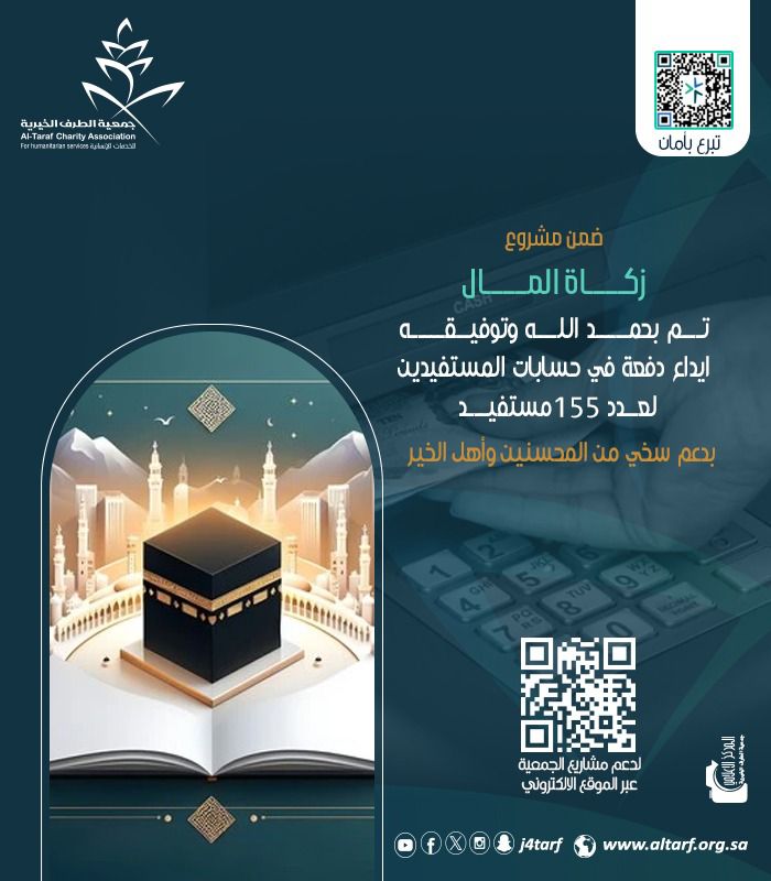 في إطار جهودها المستمرة لدعم الأسر المحتاجة، قامت جمعية الطرف الخيرية بمحافظة الأحساء بإيداع الدفعة الرابعة في الحسابات البنكية لـ150 مستفيد من خدماتها من المستحقين للزكاة، وذلك ضمن مشروع الزكاة لعام 2025م،