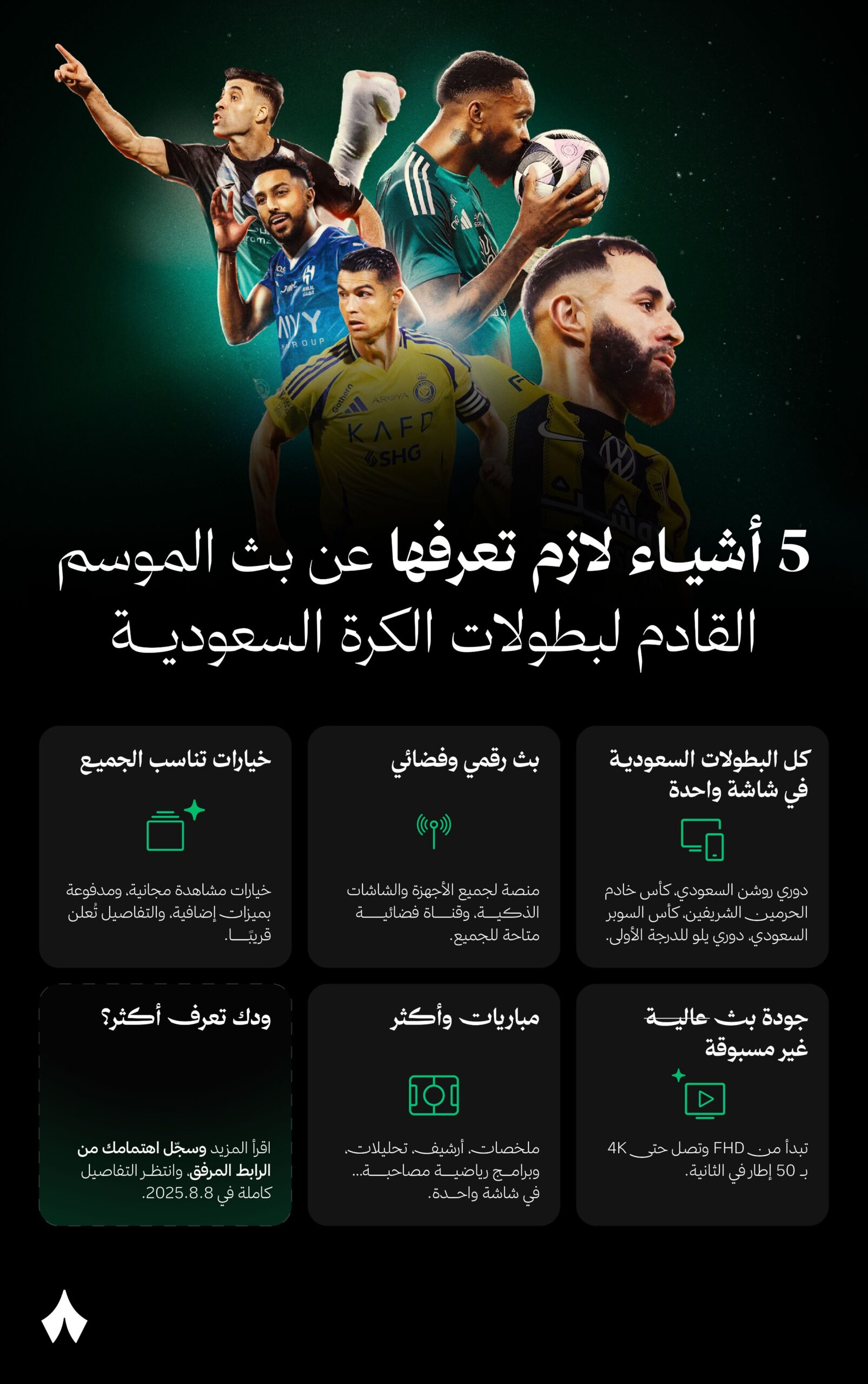 مع اقتراب انطلاق الموسم الجديد لبطولات كرة القدم السعودية، تم الإعلان عن مجموعة من المميزات الجديدة المتعلقة بالبث التلفزيوني والرقمي، والتي تهدف إلى تحسين تجربة المشاهدة للمشجعين داخل المملكة وخارجها. وفيما يلي أبرز خمس نقاط يجب معرفتها حول البث الجديد: