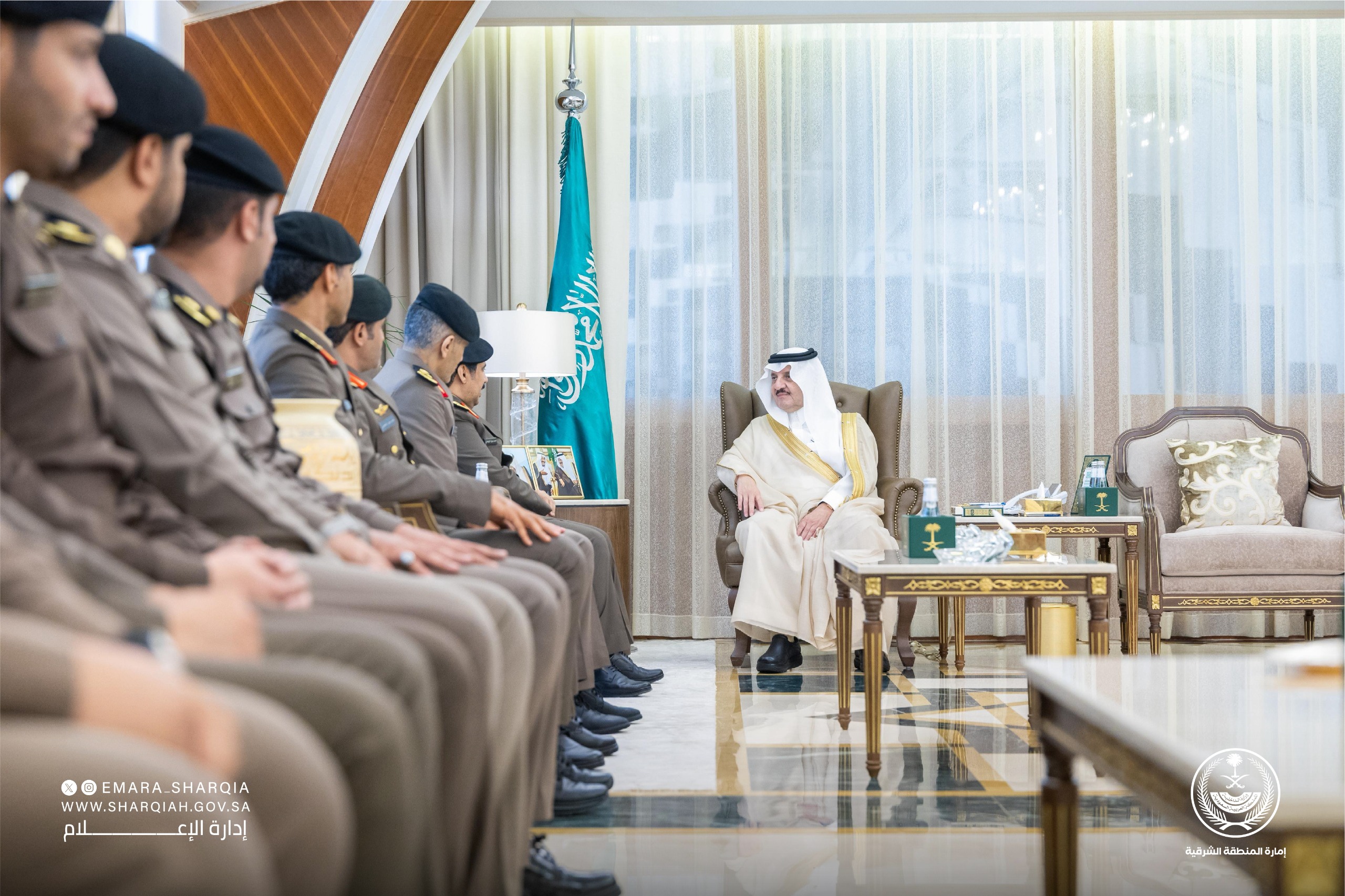 كرم صاحب السمو الملكي الأمير سعود بن نايف بن عبدالعزيز، أمير المنطقة الشرقية، في مكتب سموه بديوان الإمارة اليوم الخميس، مدير شرطة المنطقة الشرقية اللواء محمد مبارك الوذيناني وعددًا من الضباط والأفراد من منسوبي شرطة المنطقة، تقديرًا لما قدموه من جهود متميزة وتحقيق منجزات أمنية.