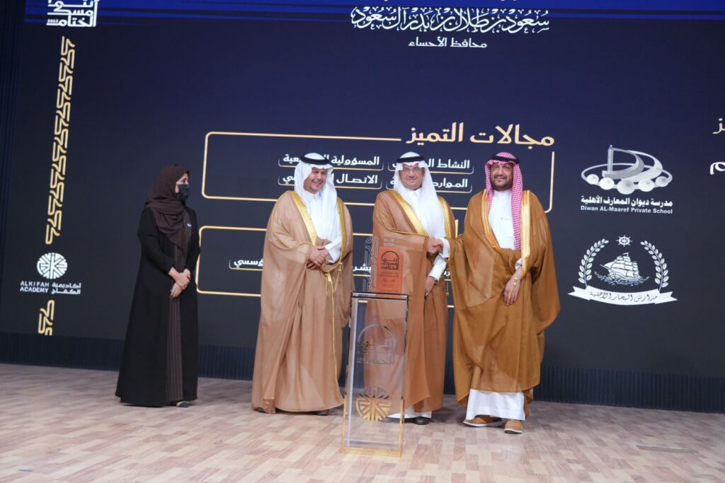 كرم صاحب السمو الملكي الأمير سعود بن طلال بن بدر آل سعود محافظ الأحساء مدارس ديوان المعارف الأهلية لصاحبها رجل الأعمال منذر بن عبدالعزيز آل الشيخ مبارك ، ومدارس البحار الأهلية للبنات والتي تمتلكها سيدة الأعمال نهلة بنت ناصر الزرعة و، وذلك بعد حصولهما على درع ” المنشأة التعليمية الخاصة المتميزة ”
