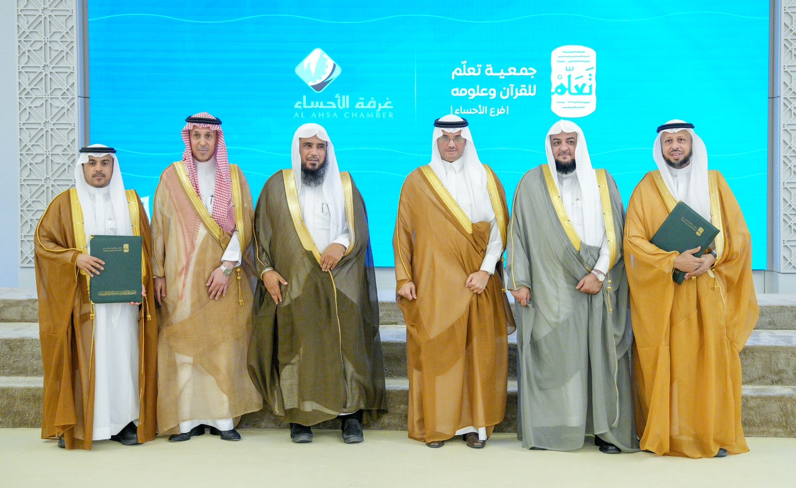 وشهد سموّه توقيع شراكة بين جمعية (تعلّم) للقرآن وعلومه وغرفة الأحساء ، وعبّر الفائزون عن امتنانهم وشكرهم لسمو محافظ الأحساء على اهتمامه ورعايته، كما كرّم سموّه في ختام الحفل اللجان المنظمة، والمحكّمين، والجهات الداعمة، تقديرًا لجهودهم في إنجاح المسابقة.