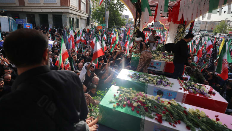 وأعلنت إيران عبر التلفزيون: “بدأت رسميا مراسم تكريم الشهداء”، فيما نقل التلفزيون مشاهد في طهران تظهر فيها حشود تحمل أعلام إيران وترفع صور القادة العسكريين الذين قتلوا في النزاع.