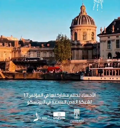 اختتمت “الأحساء المبدعة” مشاركتها في المؤتمر السنوي السابع عشر لشبكة المدن المبدعة (UCCN) التابعة لمنظمة اليونسكو، الذي استضافته مدينة “أنجيان ليه بان” شمال العاصمة الفرنسية باريس، خلال الفترة من 23 إلى 24 يونيو الجاري، بمشاركة أكثر من 350 مدينة من مختلف أنحاء العالم.