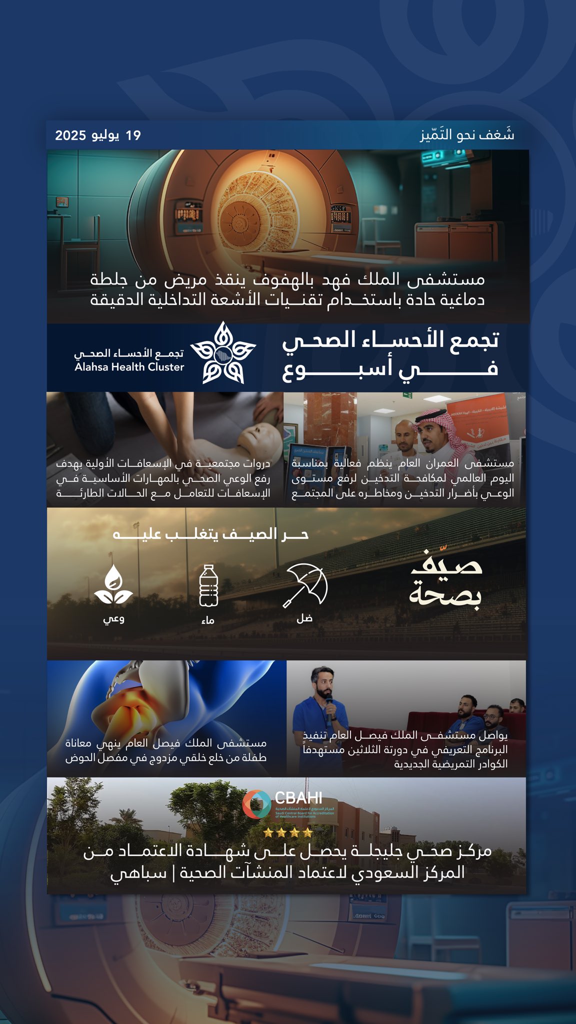 في أسبوعٍ حافل بالعطاء والتميّز، واصل تجمّع الأحساء الصحي جهوده النوعية في تقديم الخدمات الطبية والتوعوية، من خلال عدد من المبادرات والإنجازات التي تسلط الضوء على التقدّم المستمر في الرعاية الصحية بالمملكة.