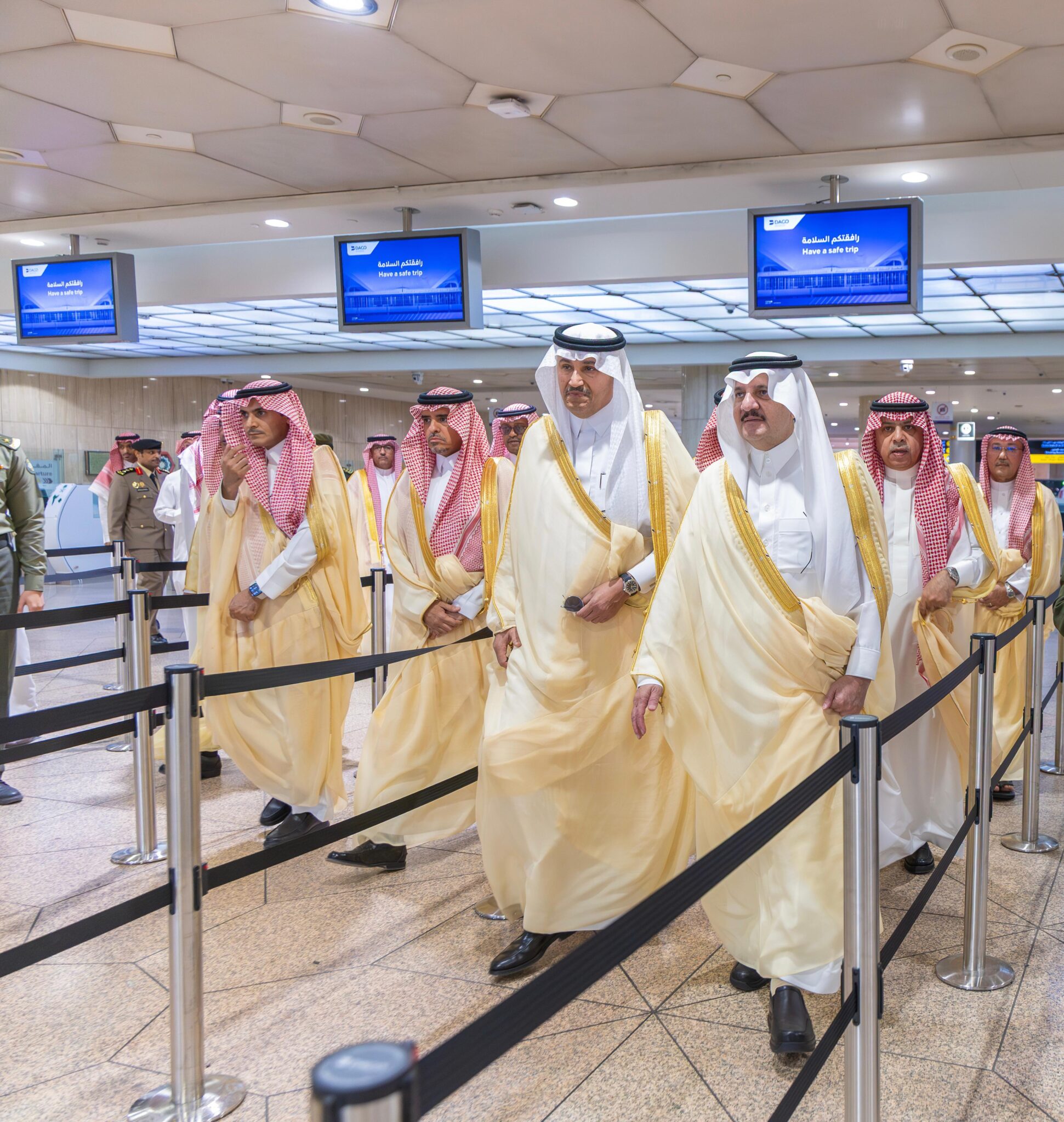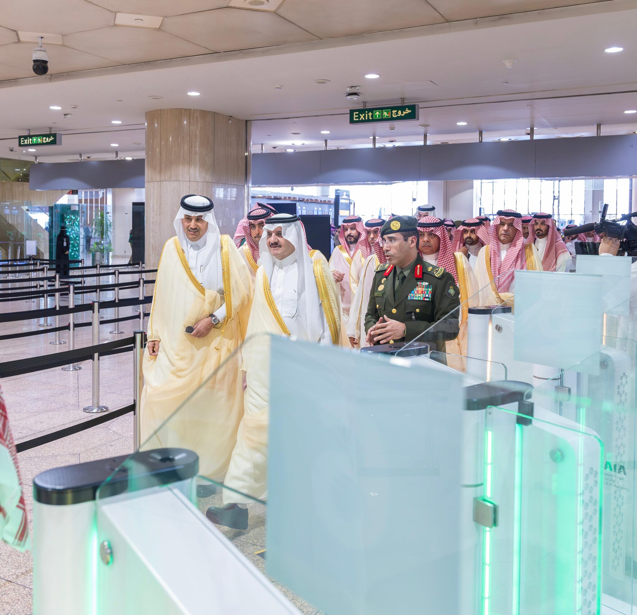 دشّن صاحب السمو الملكي الأمير سعود بن نايف بن عبدالعزيز، أمير المنطقة الشرقية، اليوم الأحد ضمن المشاريع التنموية بمطار الملك فهد الدولي بالدمام خدمة البوابات الإلكترونية لإنهاء إجراءات المسافرين في صالات السفر بمطار الملك فهد الدولي، وذلك بحضور معالي وزير النقل والخدمات اللوجستية المهندس صالح بن ناصر الجاسر، ومعالي رئيس الهيئة العامة للطيران المدني الأستاذ عبدالعزيز بن عبدالله الدعيلج، ومعالي نائب رئيس الهيئة السعودية للبيانات والذكاء الاصطناعي (سدايا) المهندس سامي بن عبدالله مقيم، وسعادة مدير عام الجوازات المكلف اللواء الدكتور صالح بن سعد المربع.
