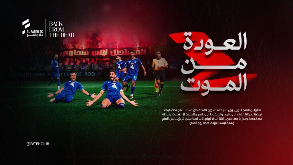 في خطوة غير مسبوقة على مستوى الأندية السعودية، عرض نادي الفتح فيلمه الوثائقي الجديد “العودة من الموت”، والذي حاز على إشادة واسعة من الوسط الرياضي، لما قدمه من محتوى جريء وغير اعتيادي في المشهد الرياضي المحلي.
