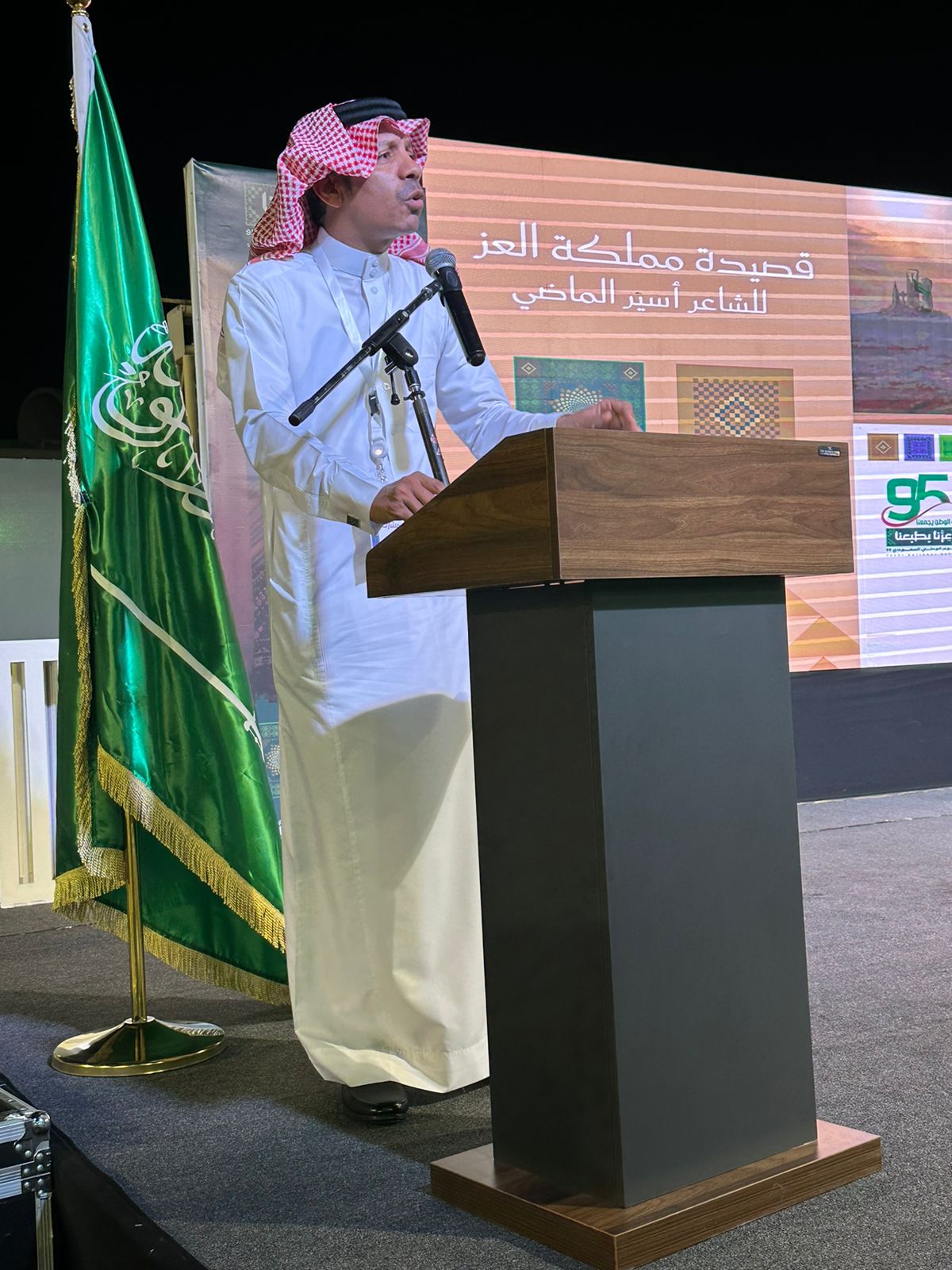 كما ألقى الشاعر أنور المطيري بقصيدة شعرية وطنية في هذه المناسبة بعنوان “مملكة العز”