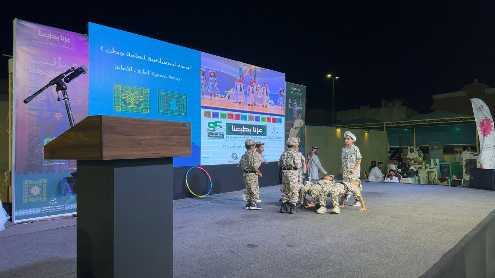 وشارك أطفال روضة جمعية الطرف الخيرية بفلكلور وطني عبرو فيه عن حبهم و تقديرهم لوطنهم في لوحة استعراضية بعنوان “هامة وطن”، تلا ذلك فقرة بعنوان التراث الأحسائي للراوي سعيد البن زيد، فيما قدم براعم مركز نوادر الطفولة أبوريت “رؤية تعلو بنا”.