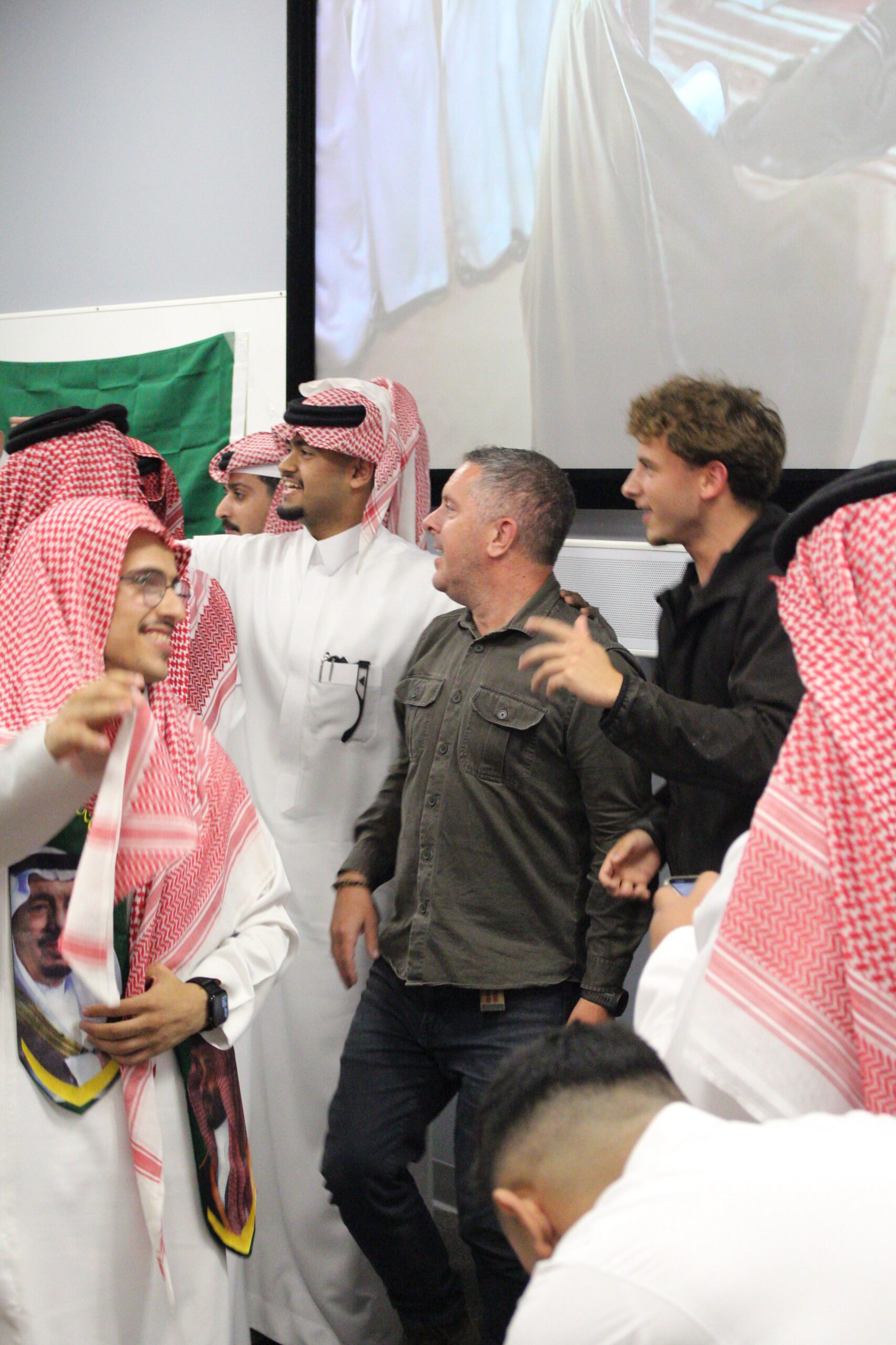 ولإضفاء طابع تراثي أصيل، أقيمت فقرة العرضة السعودية بمشاركة الطلبة الذين رفعوا الأعلام ورددوا الأهازيج الوطنية وسط تفاعل كبير من الجمهور، في مشهد جسّد الفخر والاعتزاز بالهوية الوطنية.