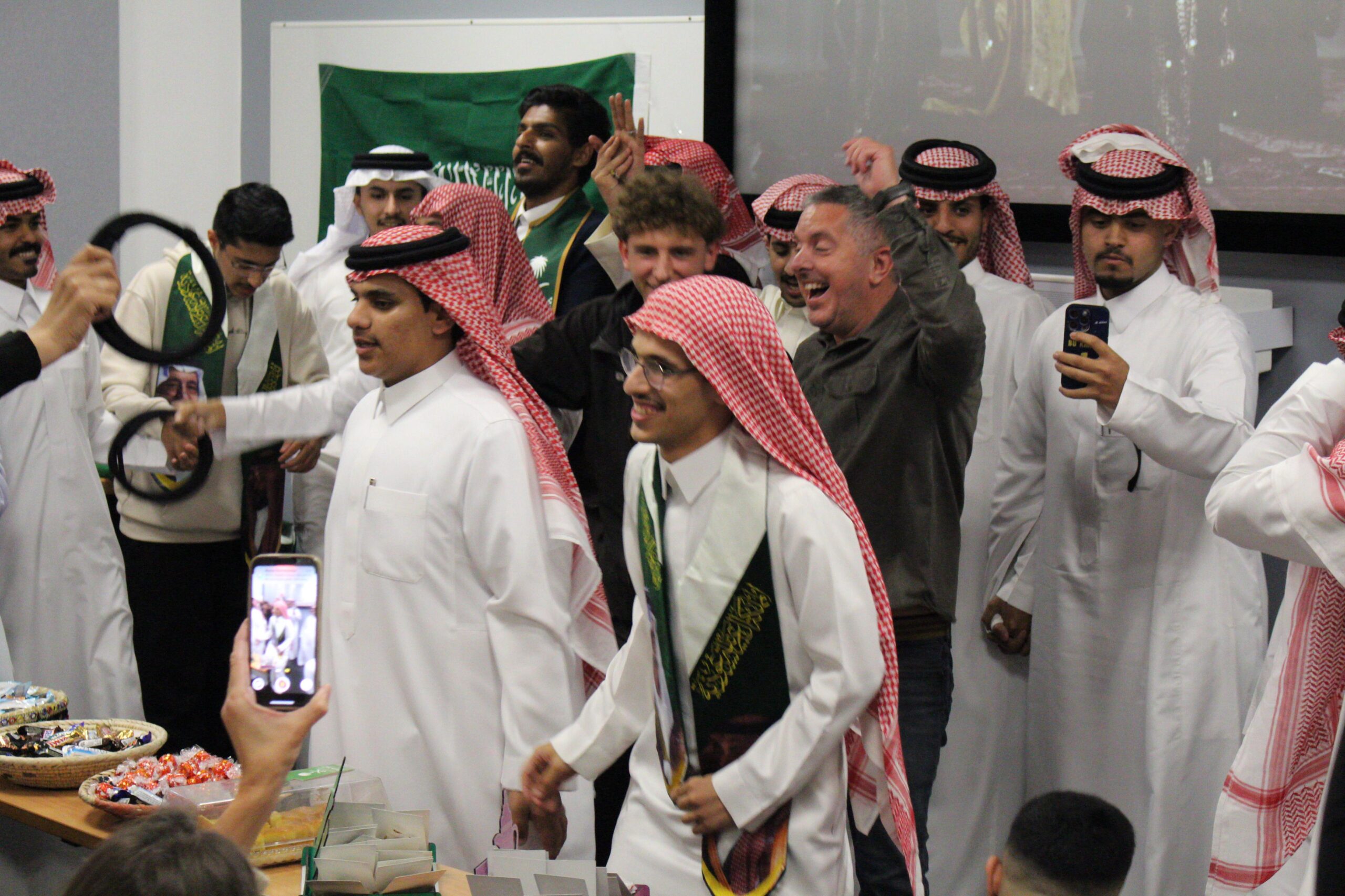 أقام النادي السعودي في بورنموث ببريطانيا احتفالًا مميزًا بمناسبة اليوم الوطني السعودي الـ95، وذلك في حرم جامعة بورنموث، وسط حضور تجاوز 160 شخصًا من المبتعثين والمبتعثات والطلبة الدوليين إلى جانب الكادر الأكاديمي.