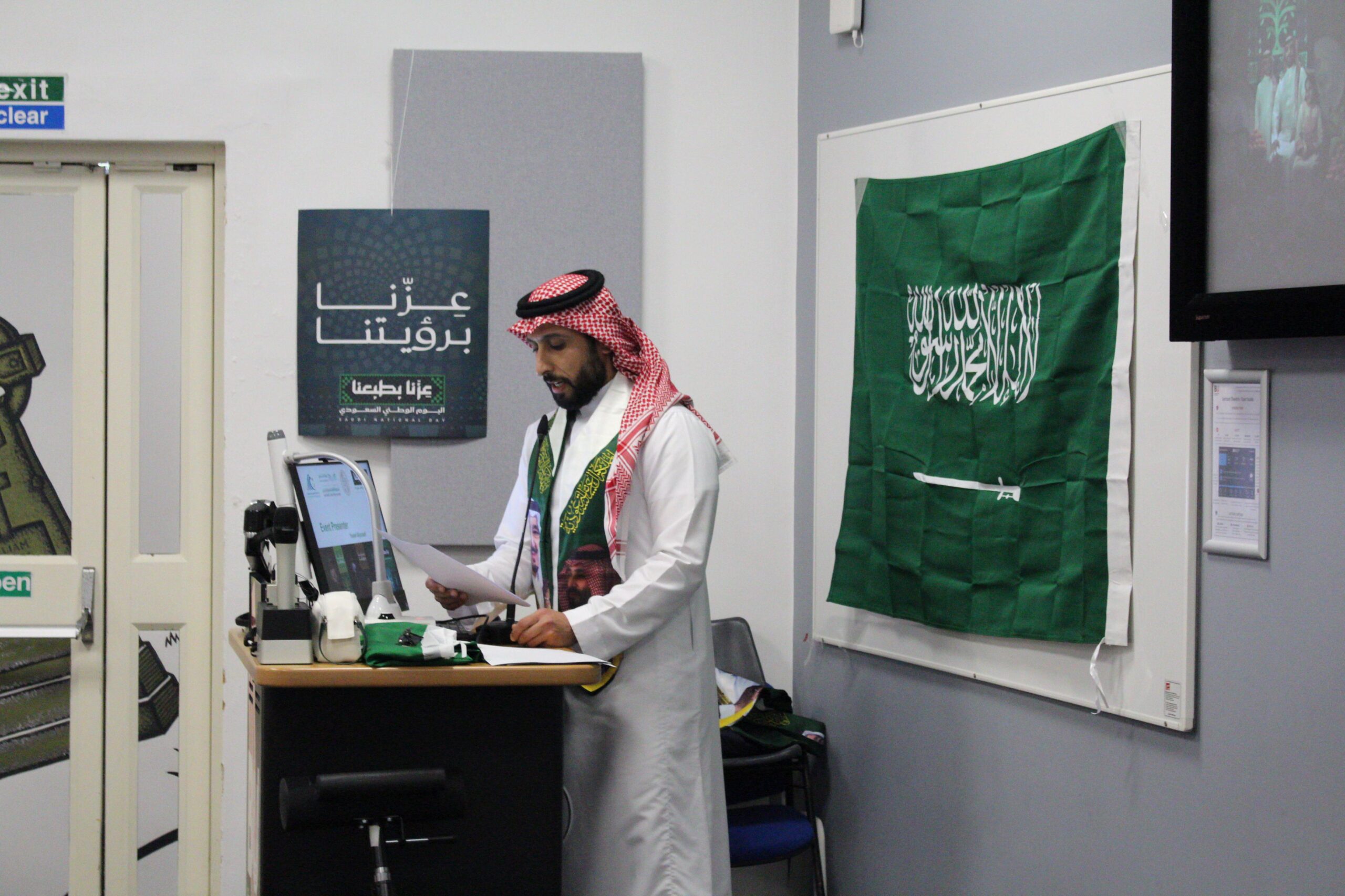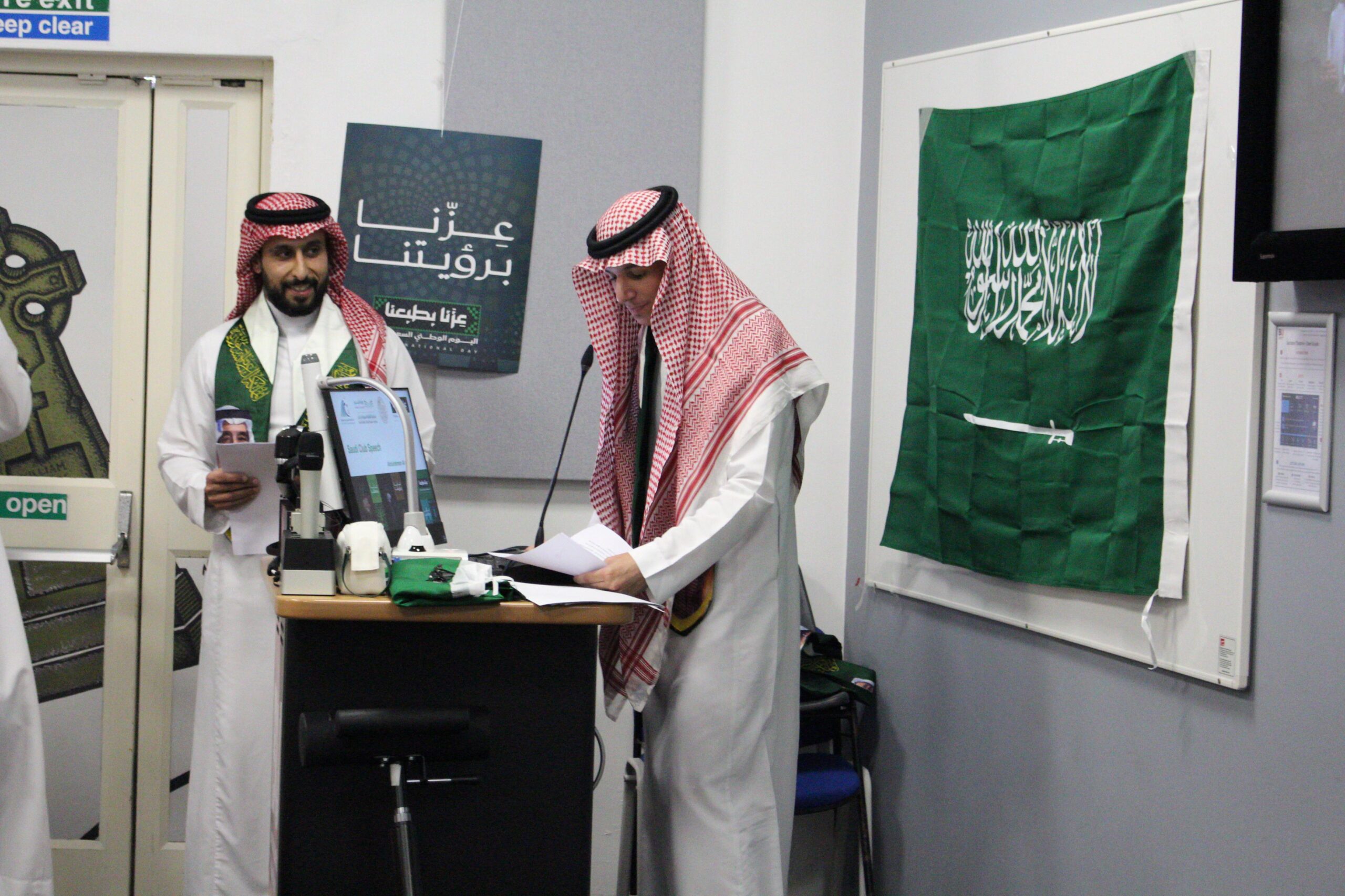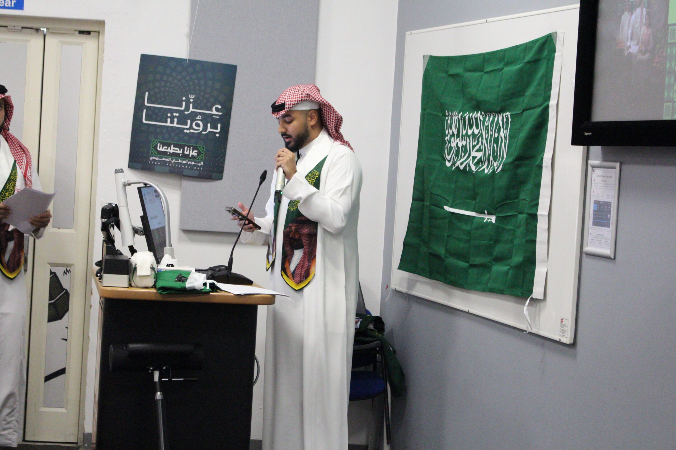 افتُتح الحفل بتقديم من المبتعث يوسف اليوسفي، أعقبه إلقاء كلمة النادي السعودي في بورنموث نيابة عن رئيس النادي عبدالله بوحليّم الأستاذ عبدالرحمن العنزي، الذي رحّب بالحضور وأكد على أهمية هذه المناسبة في تعزيز روح الانتماء والتعريف بثقافة المملكة.