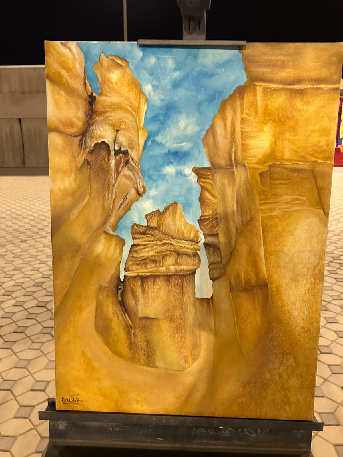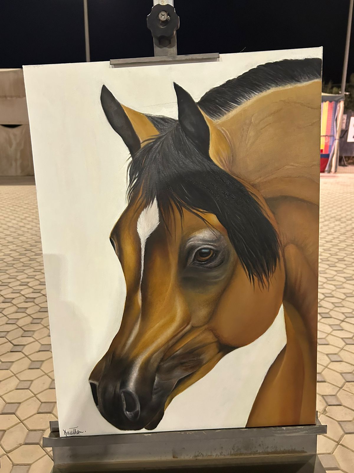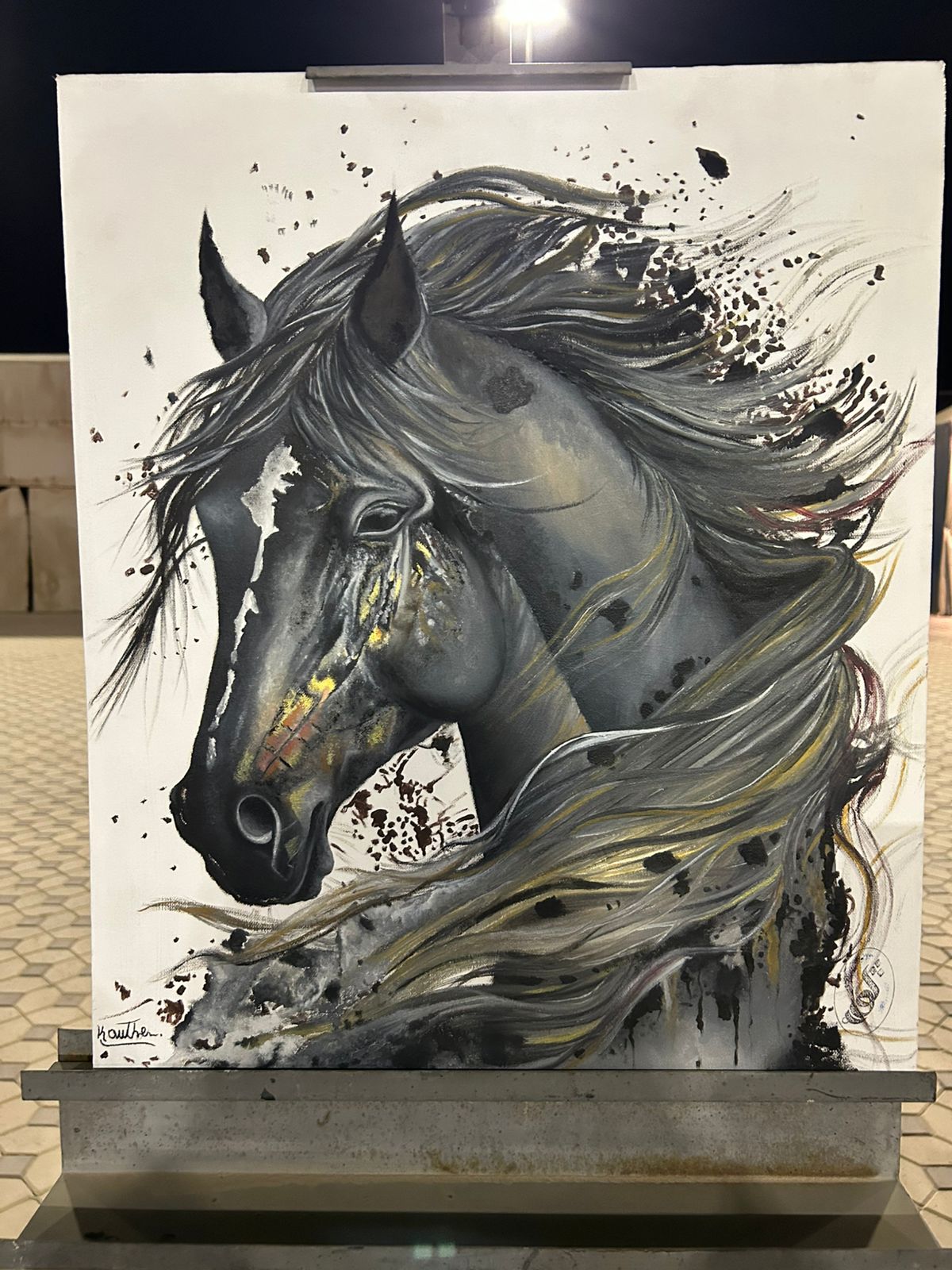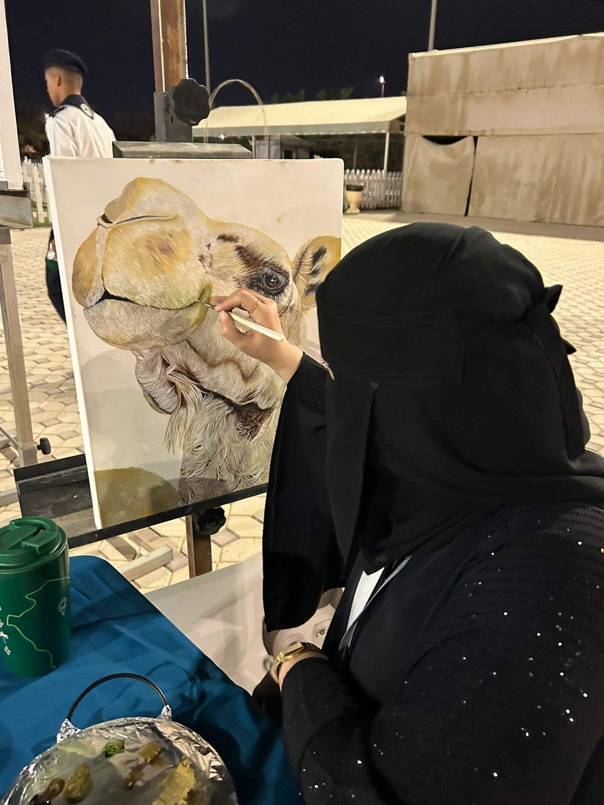 وكان من أبرز المشاركات الفنانة التشكيلية كوثر الموسوي التي أبدعت في الرسم المباشر، مقدمة لوحة فنية جسدت سفينة الصحراء – الجمل في مشهد نال إعجاب الزوار.