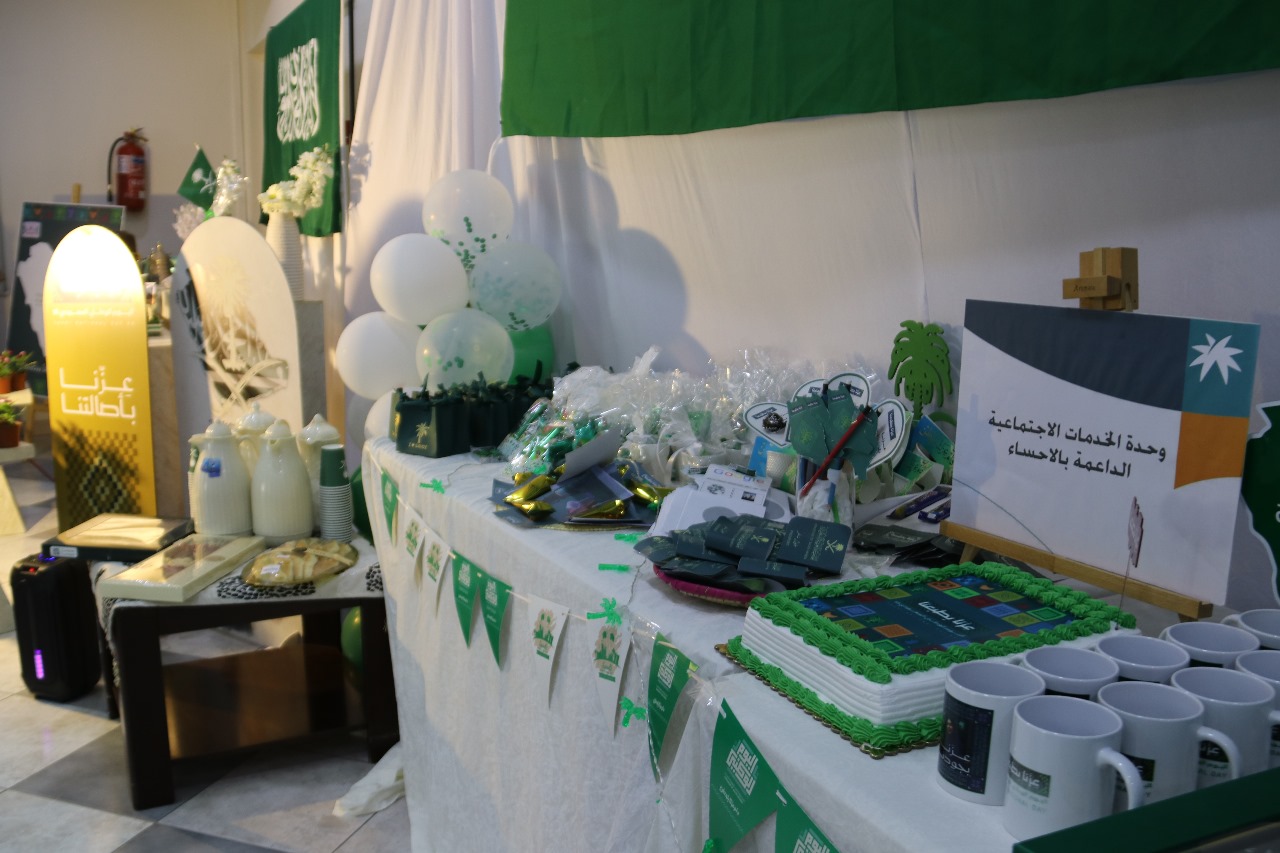 بعدها بدء الإحتفال بمشاركة مميزة من فريق التحول والإسناد على مراكز الحمايات الاسرية وحماية الطفل بالمنطقة الشرقية( الأحساء )، إلى جانب مشاركة جميلة من جمعية طويق فرع الأحساء ، اللتين أسهمتا في نجاح هذه المناسبة الوطنية مع وحدة الخدمات الداعمة الاجتماعية ، مما أضفى طابعًا مجتمعيًا مميزًا .