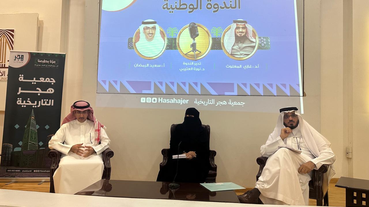 نظّمت جمعية هجر التاريخية برنامجًا وطنيًا بعنوان “عزّنا بطبعنا”، قدّمت خلاله ندوة وطنية تناولت محاور عن تاريخ الأحساء وإسهاماتها الحضارية والثقافية في مسيرة الوطن.