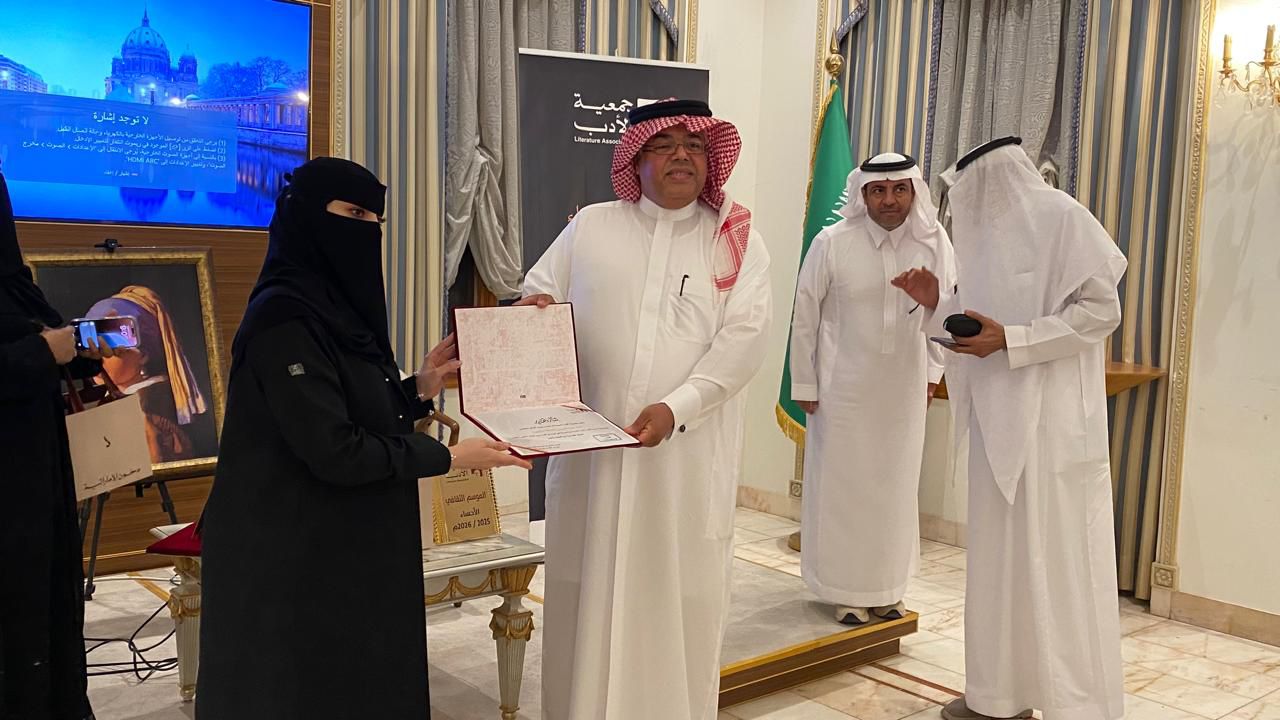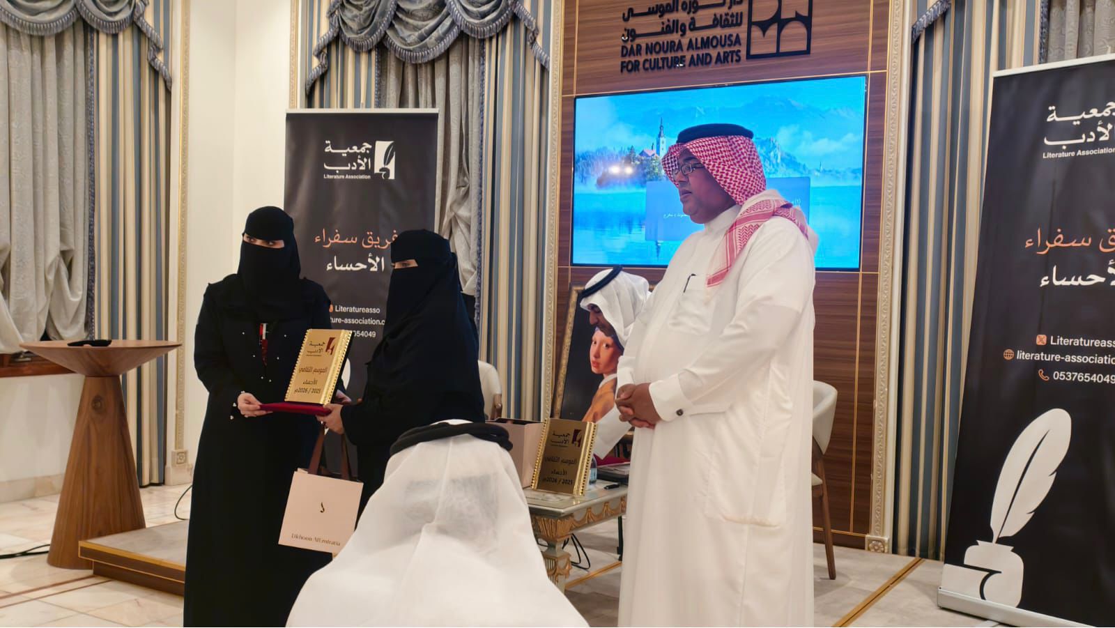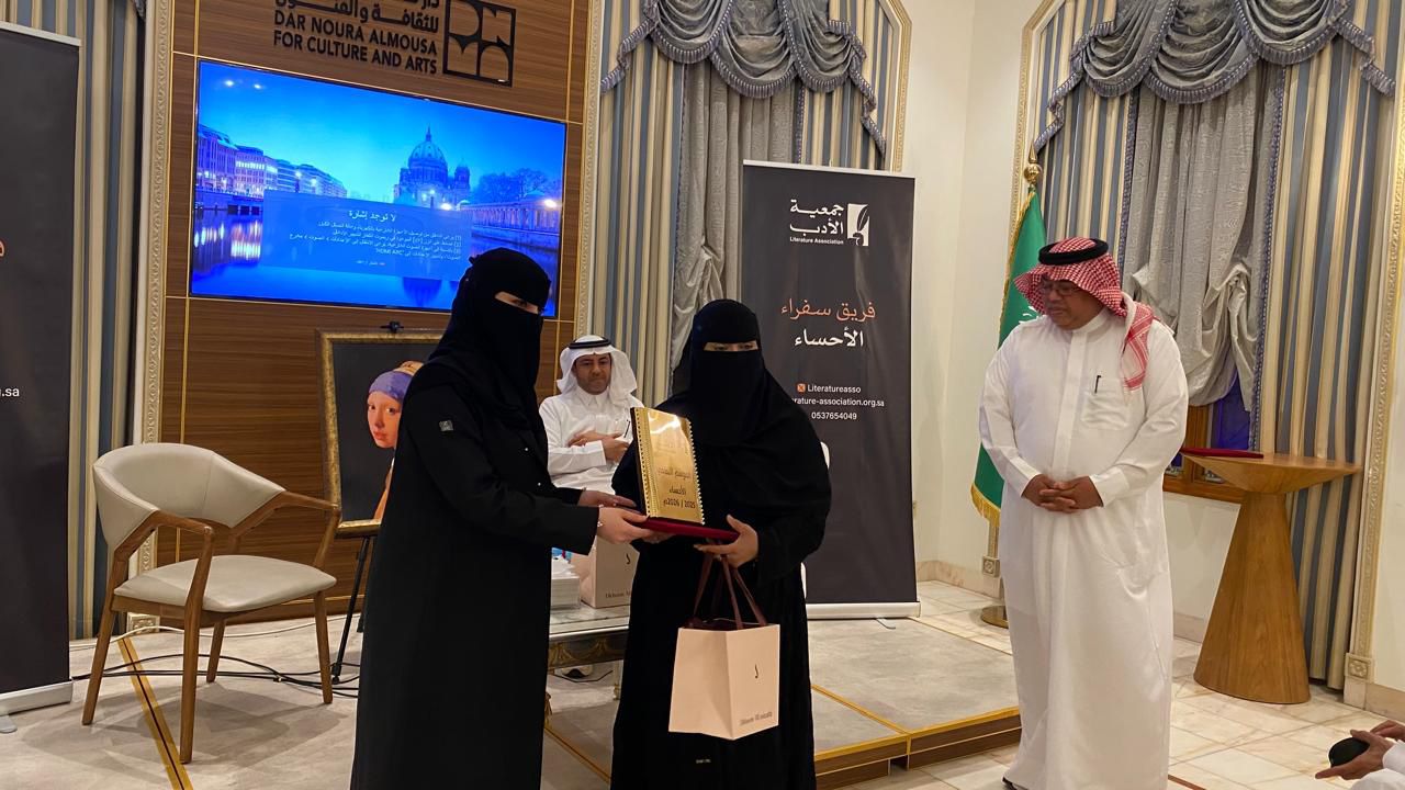 ثمّ تمّ تكريم ضيوف المحاضرة من رئيس سفراء جمعية الأدب في الأحساء سعادة الدكتور عبدالله الخضير ، ومديرة دار نورة الموسى للثقافة والفنون سعادة الدكتورة غادة الدوغان .