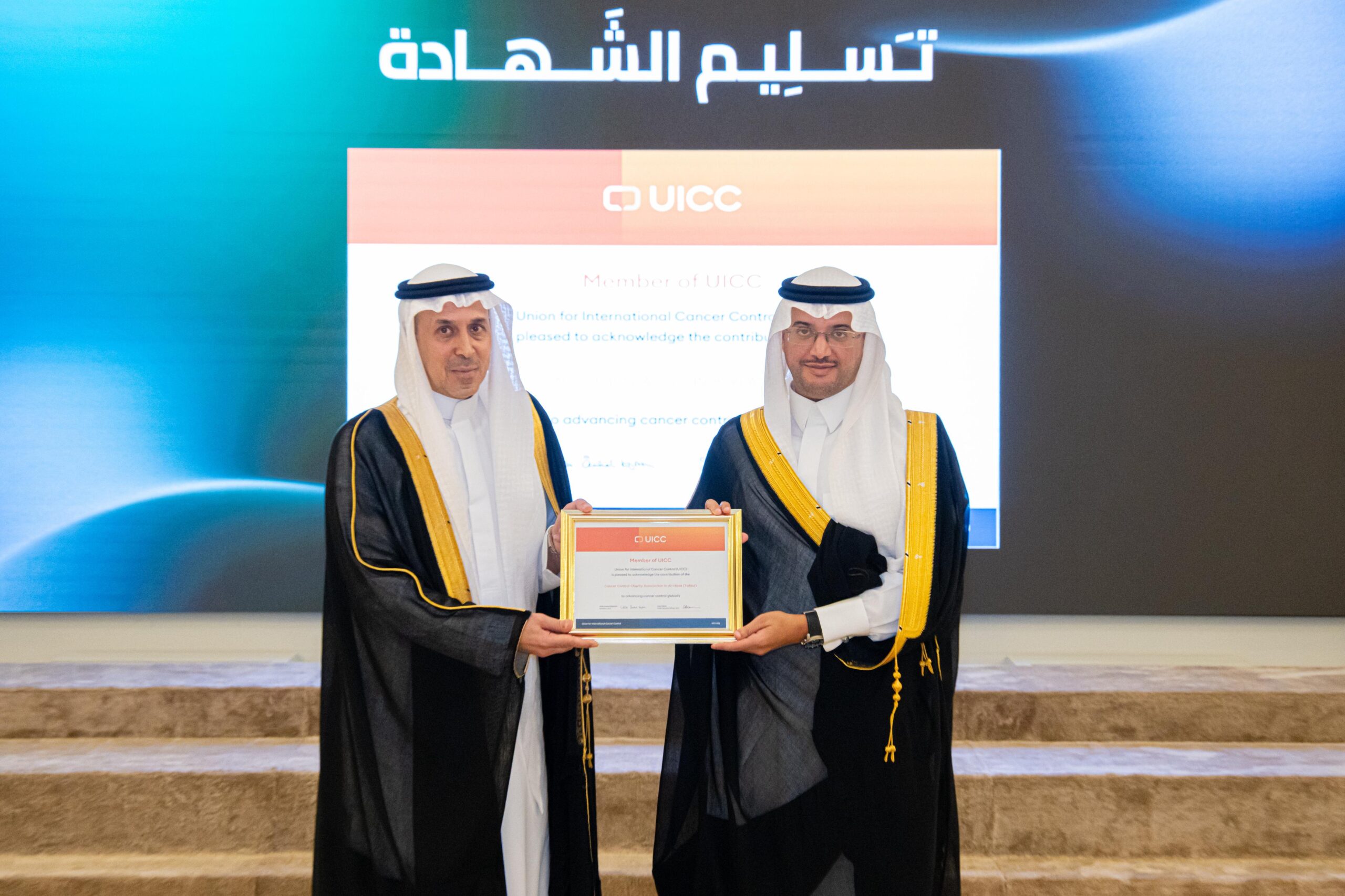 بدوره، استعرض المدير التنفيذي للجمعية الدكتور فؤاد الجغيمان منجزات الجمعية، مشيرًا إلى حصول الجمعية على الوسام الذهبي من منصة تبرع، وإطلاق منصة “تفاؤل” للاستشارات الخاصة بمرضى السرطان وذويهم، ومنصة “إتقان” للجودة والتميز المؤسسي، كما أعلن انضمام الأحساء لعضوية الاتحاد الدولي لمكافحة السرطان (UICC)، ممثلة في جمعية تفاؤل، وتسلّم سموّه شهادة العضوية الرسمية.