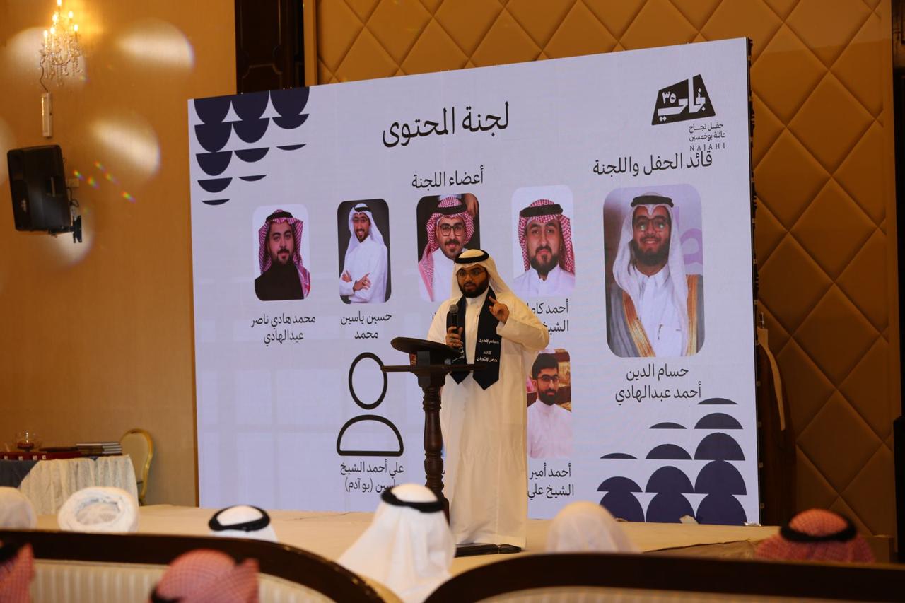 وتم عرض أرشيف الأنشطة الخاصة بالأسرة على الحفل، مروراً بلحظة الانطلاقة العظيمة منذ أن كانت فكرة حفل نجاحي في العام ١٤١٠ هـ تعشعش في مخيلة صاحب فكرة الحفل المهندس رياض الشيخ باقر بوخمسين، ليتم بعدها تنفيذ الفكرة على أرض الواقع بإقامة أول حفل في بيت المهندس عباس الشيخ باقر بوخمسين برفقة أخيه المهندس رياض الشيخ باقر وكان عدد الطلاب آنذاك سبع وثلاثون طالباً، وبعدها تولت جمعية الأسرة مسؤولية إقامة الحفل وبرز وقتها أ. عبد الكريم بوخمسين و سيد عبد الكريم المسلم وعلي محمد محسن بوخمسين بوليد والدكتور محمد صالح بوخمسين وإبراهيم سلمان بوخمسين.