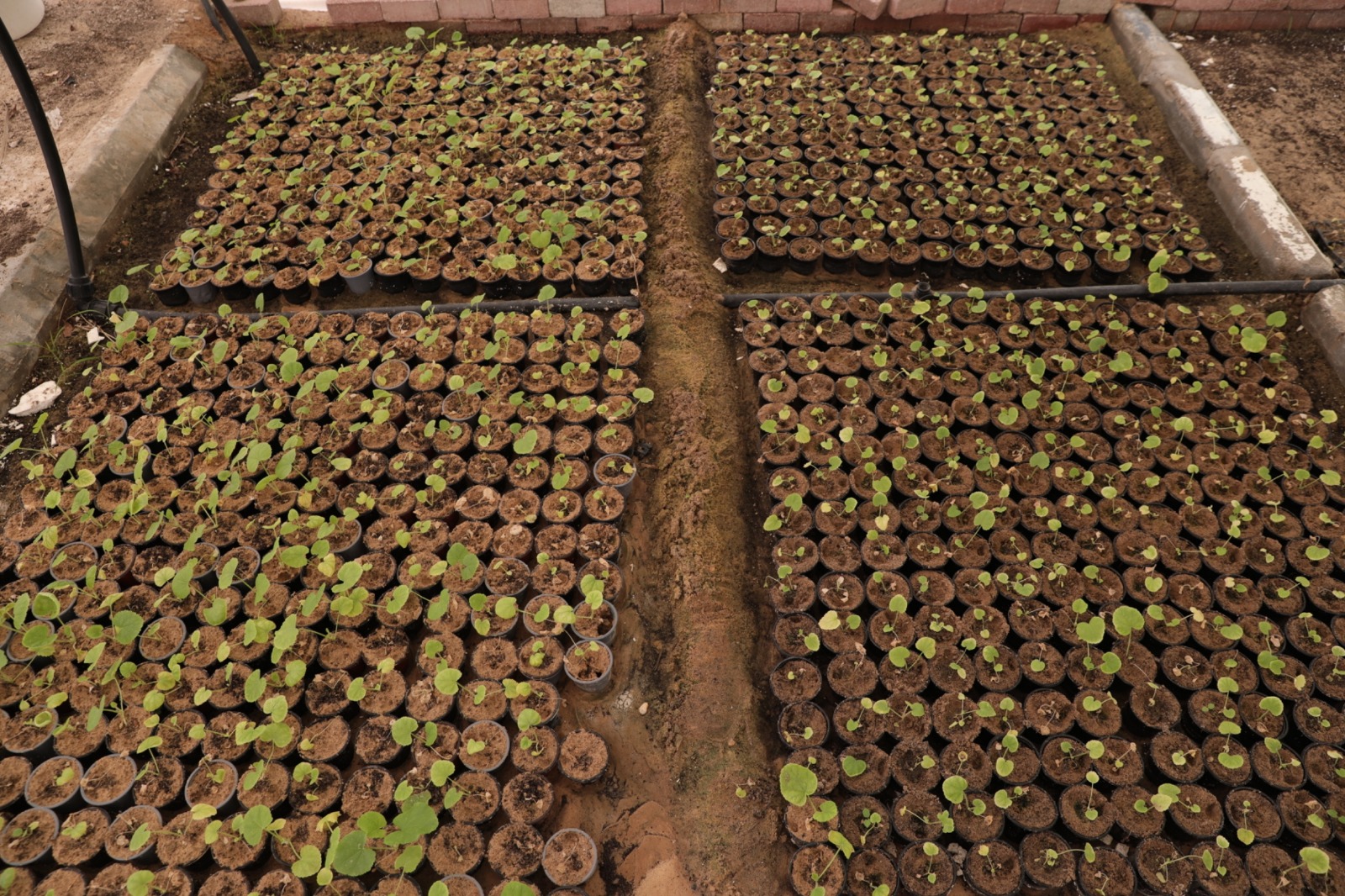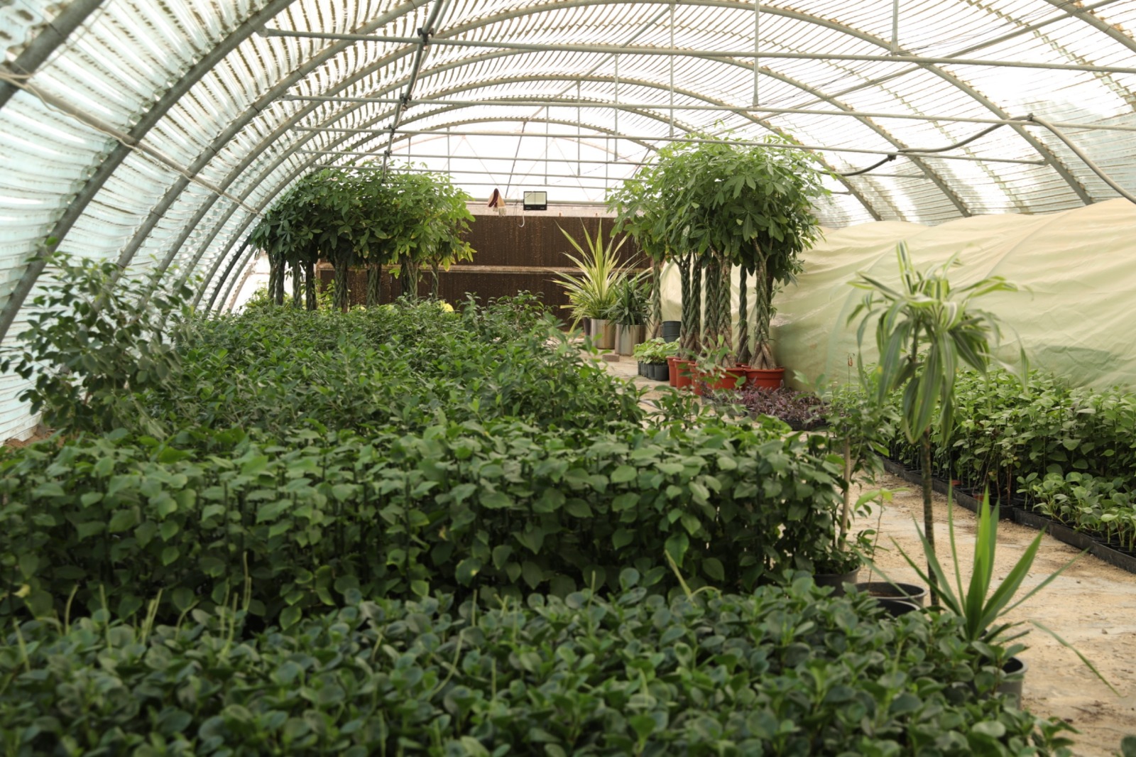 وبيّن بووشل أن المشتل يشغل مساحة 500 ألف متر مربع، ويضم محطة متطورة لمعالجة الملوحة وفلترة المياه لتوفير مياه ريّ مناسبة لمختلف أنواع النباتات، إلى جانب بيوت محمية يتم التحكم فيها آليًا ومساحات مخصصة لتجميع النباتات مؤقتًا قبل توزيعها على المشاريع الميدانية.