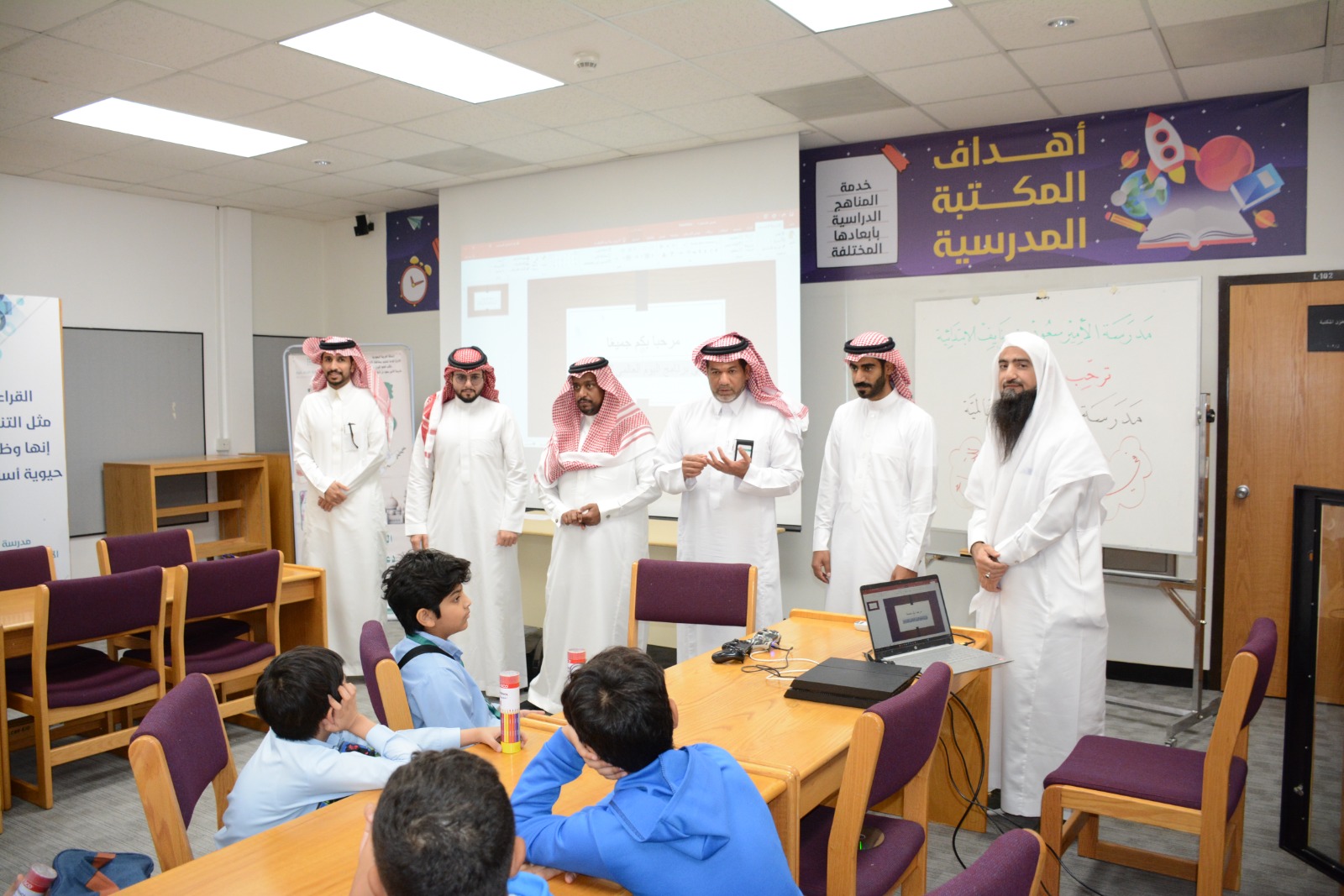 وكان في استقبال طلاب مدارس الريادة مدير مدرسة الأمير سعود يوسف بن عبدالعزيز الحمدان، ووكيلي المدرسة خالد الملحم وصالح النينياء، والموجهان الطلابيان خليفه بوغنوم، وظافر القرني الذين رحبوا بأبنائهم الطلاب.